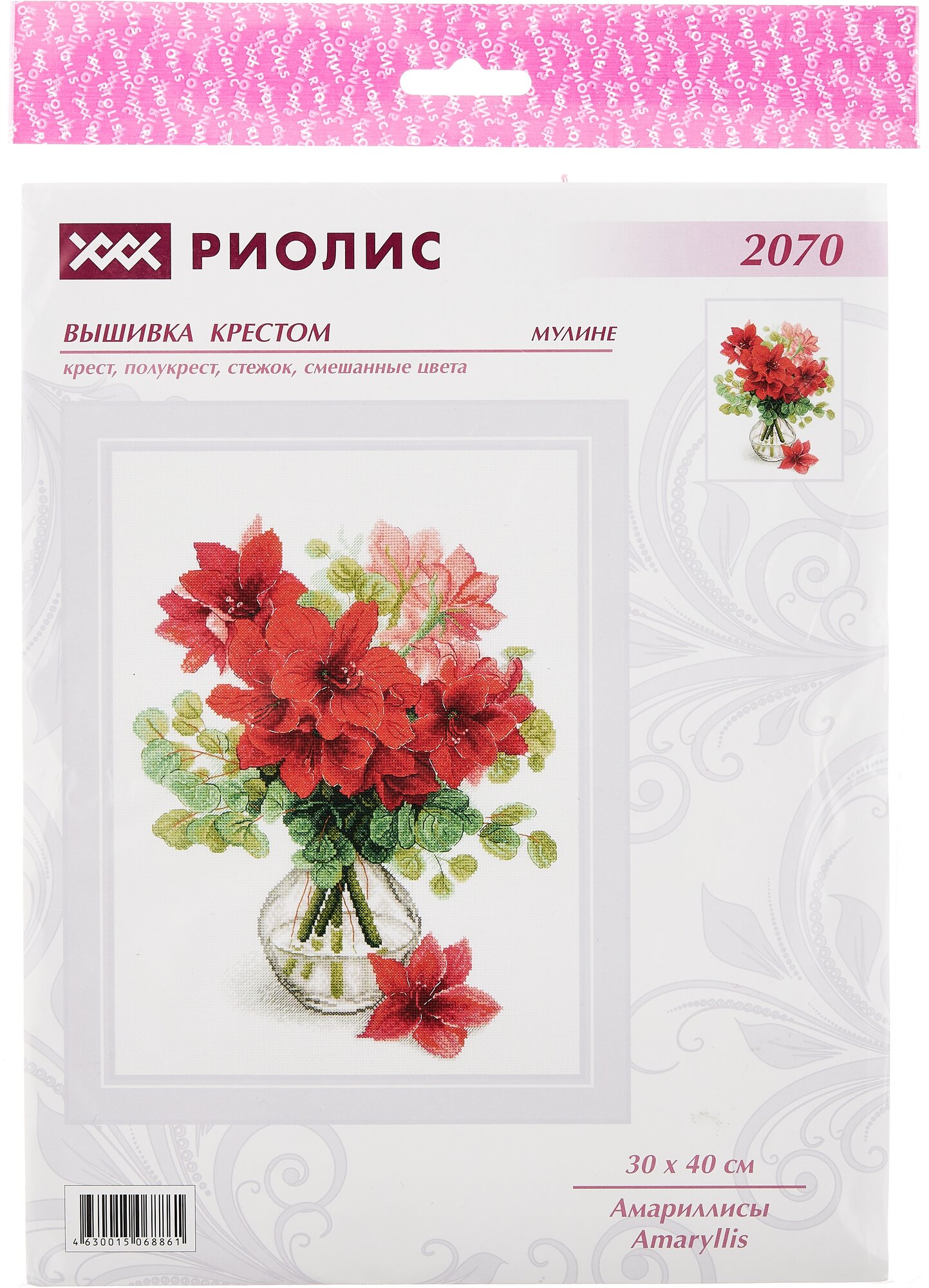 Набор для вышивания риолис Амариллисы 30х40 см - яркий вариант в коллекции этого известного производителя. Вышивка крестом - не только улучшение настроения, благодаря вышитым картинам любое помещение приобретет индивидуальные черты. Наборы для вышивания бренда риолис - стремительно набирает популярность. Набор для вышивки - лучший подарок рукодельнице! Картина станет великолепным подарком близким и друзьям, бабушке, дедушке, маме, папе, коллеге. Это одно из немногих занятий, которое сочетает в себе столько достоинств и пользы. Любая вещь, сделанная своими руками, выглядит очень красивой, а сам процесс обычно доставляет массу удовольствия. Сегодня это востребованное хобби, рукоделие и творчество, увлекающее детей и взрослых. Элементы оформления картины в комплект не входят. В наборе используются техники: крест, полукрест, стежок, смешанные цвета.