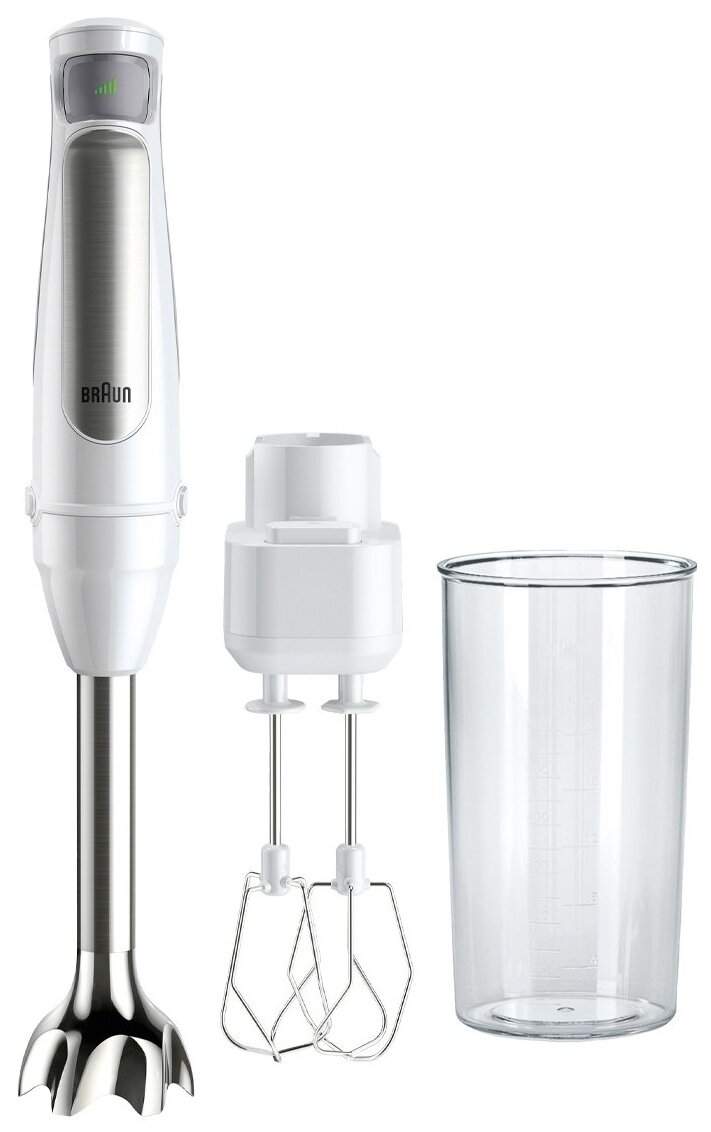 Мощный, лёгкий и простой в использовании ручной блендер Braun . Управление простое и подходит для повседневного использования. Вы можете плавно регулировать мощность, нажимая кнопку управления в любой момент процесса смешивания без перерыва. Технология PowerBell Plus - это наличие дополнительного лезвия на насадке для измельчения, что значительно увеличивает производительность работы блендера.