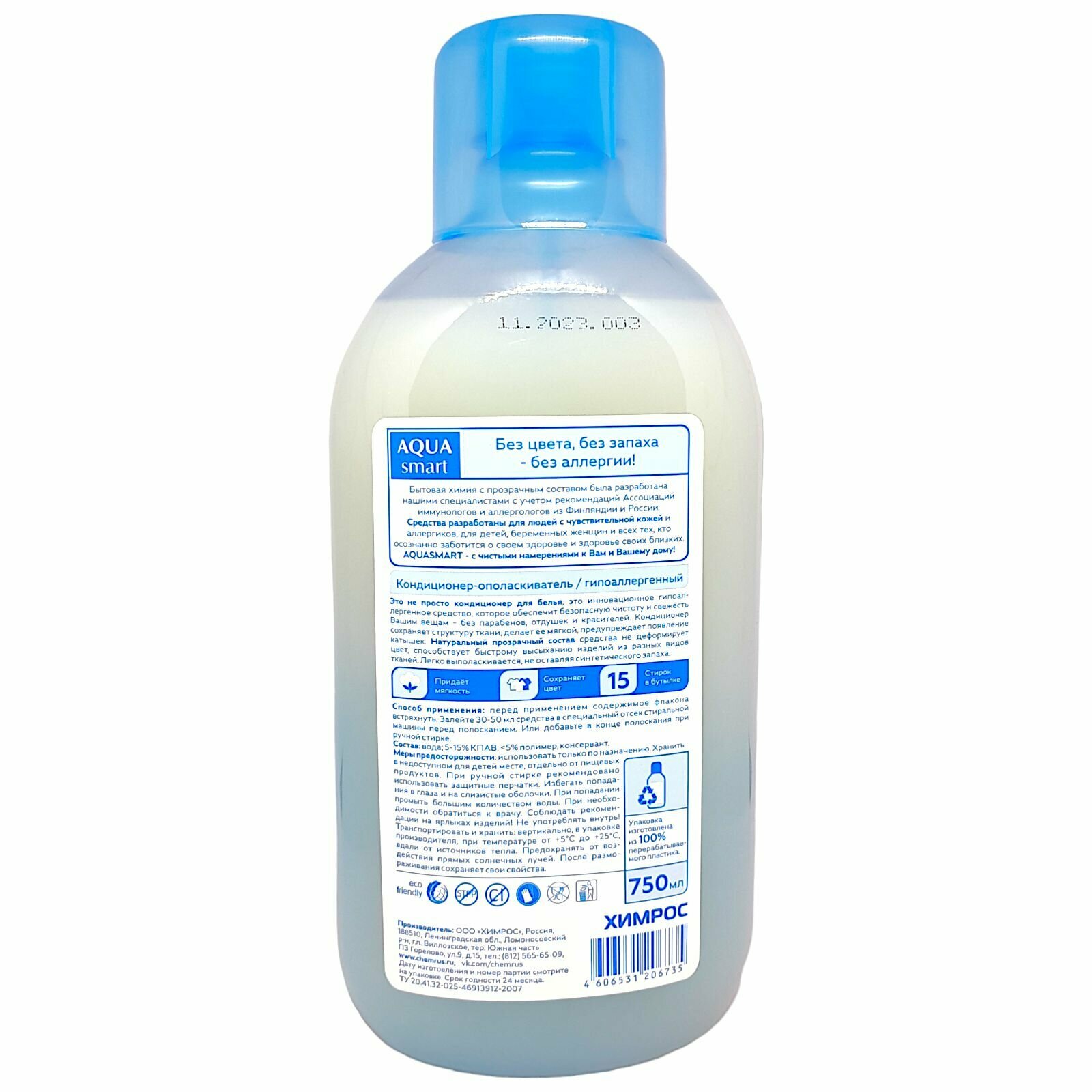 Кондиционер-ополаскиватель гипоаллергенный Aquasmart 750мл (583)