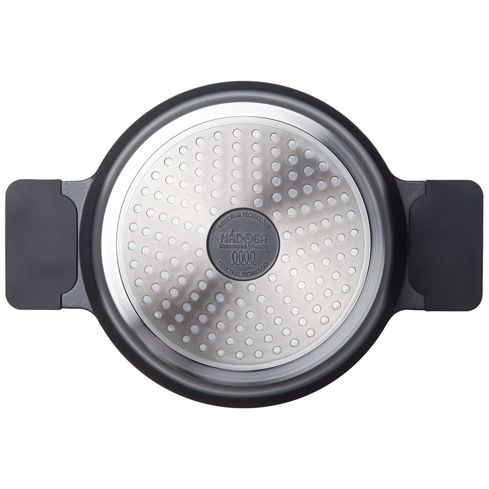 Кастрюля Nadoba Grania объемом 2,4 л изготовлена из литого алюминия с использованием особо прочного 5-слойного антипригарного покрытия ILAG Granitec, усиленного минералами. Высокая прочность антипригарного покрытия позволяет использовать при приготовлении пищи неострые металлические инструменты. Массивный корпус из литого алюминия обеспечивает равномерный нагрев всей поверхности кастрюли и не деформируется при нагревании или после частого использования. Ручки выполнены из бакелита с покрытием Soft touch, они не выскальзывают из рук и не нагреваются. Крышка из закаленного стекла имеет отверстие для выхода пара. Ручка на крышке может служить подставкой для кухонных инструментов.