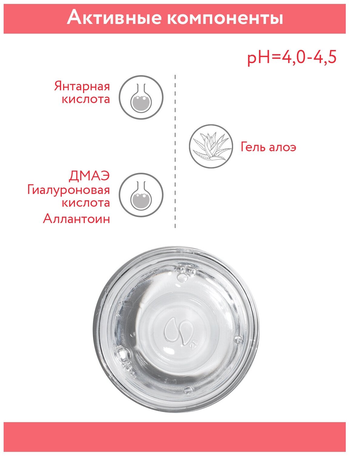 Данный тоник содержит в себе активные компоненты, такие как янтарная кислота, аллантоин, диметиламиноэтанол, гиалуроновая кислота, сок листьев алоэ, способствуют увлажнению и питанию кожи, оказывают противовоспалительное и омолаживающее, направлены на выравнивание микрорельефа.