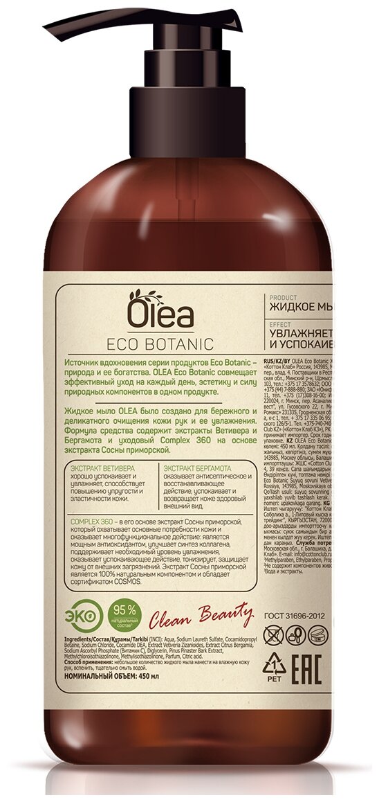 Жидкое мыло Eco Botanic "Ветивер и бергамот" с дозатором 450 мл Olea (ЭХ99989437543)
