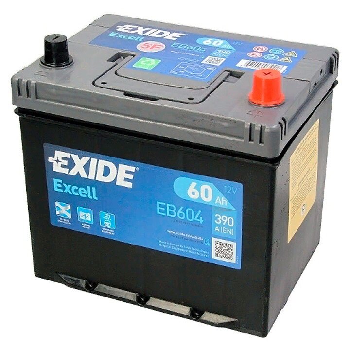Excell EB604 (60R) 390А Обратная полярность 60 Ач (230x173x225) Exide Аккумулятор Excell 12V 60Ah 390A 230х172х220 полярность ETN0 клемы EN крепление B0