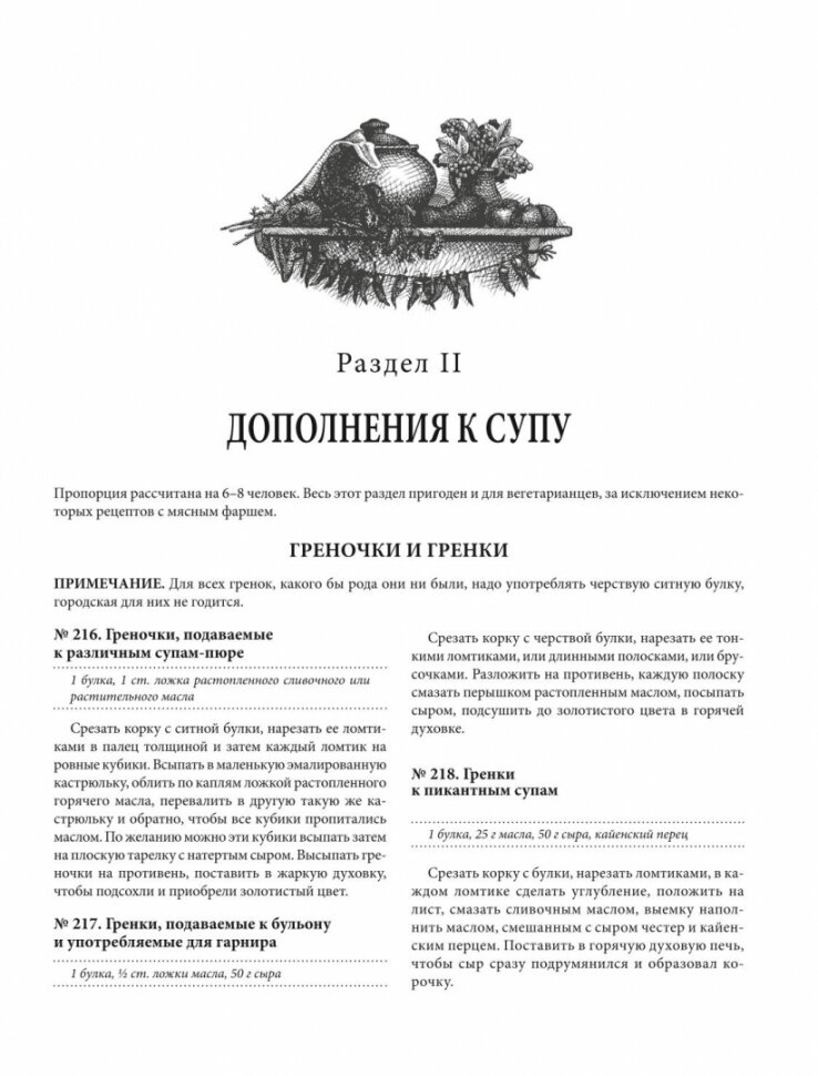 Эта книга не только пособие, содержащее свыше четырех тысяч всевозможных кулинарных советов, рецептов и секретов и позволяющее стать удивительной хозяйкой, но энциклопедия жизни XIX века. Молоховец читается как роман про сложный интересный быт и роман про утраченное прошлое.