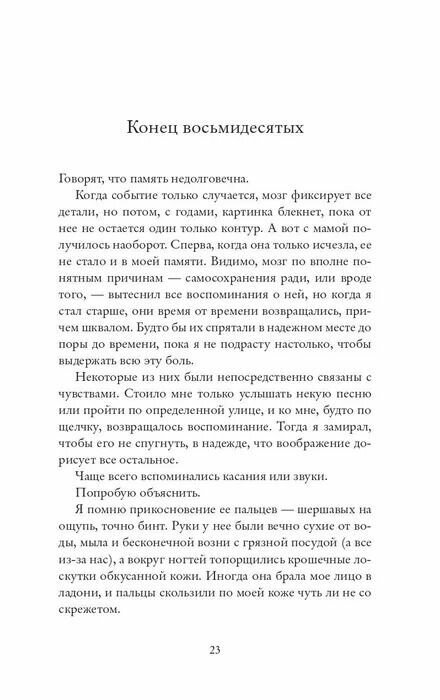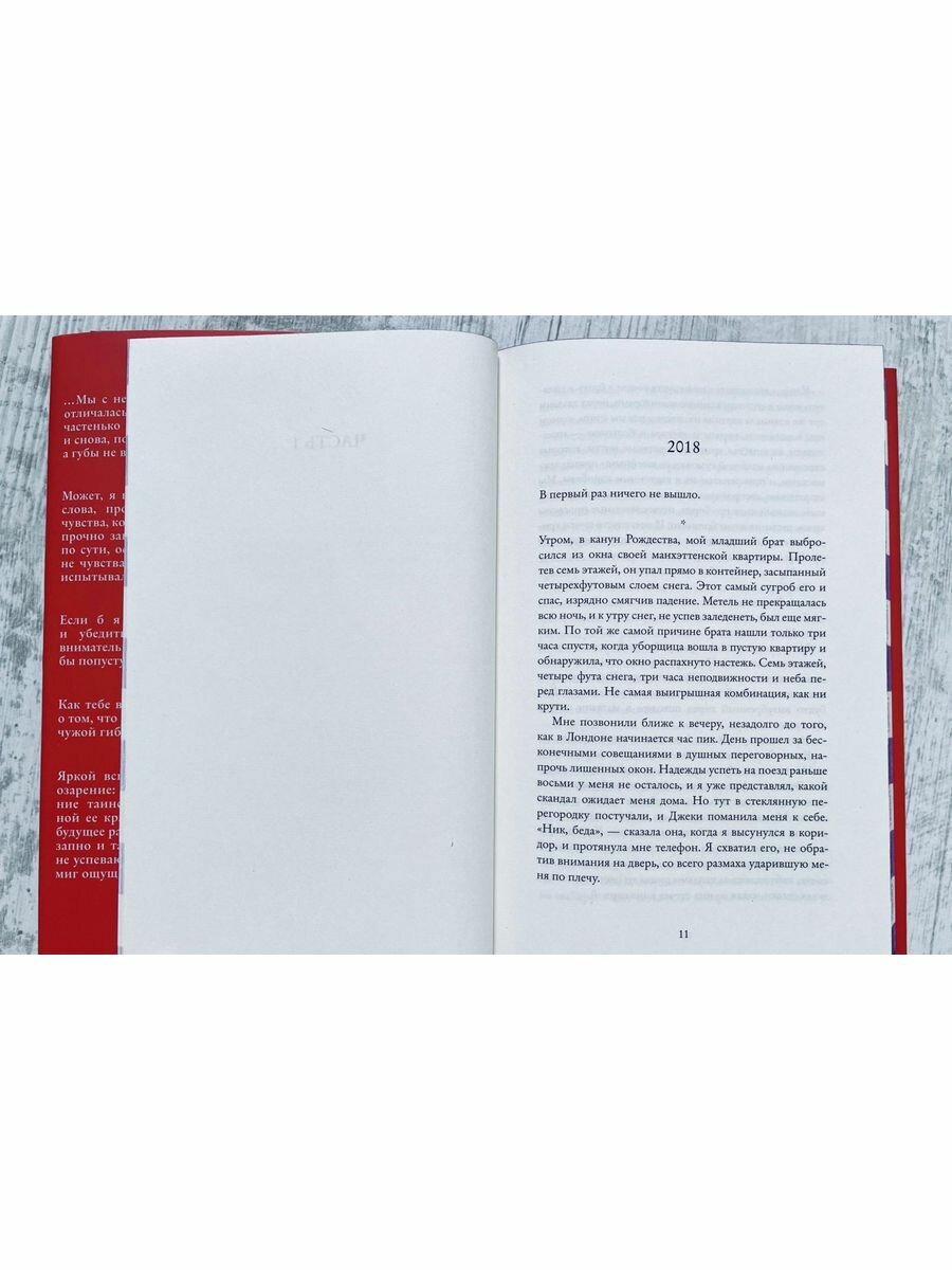 Книга очень легко и быстро читается, история захватывает с самого начала, герои живые и объемные, вызывают симпатию и сочувствие. Хороший динамичный сюжет, который не надоедает. Порой взаимоотношения двух главных героев вызывают досаду, в романе хорошо показано нарушение коммуникации, неумение говорить о своих чувствах и в целом какое-то тотальное неумение разговаривать. Очень красивое издание, яркое, с цветным срезом, суперобложкой.