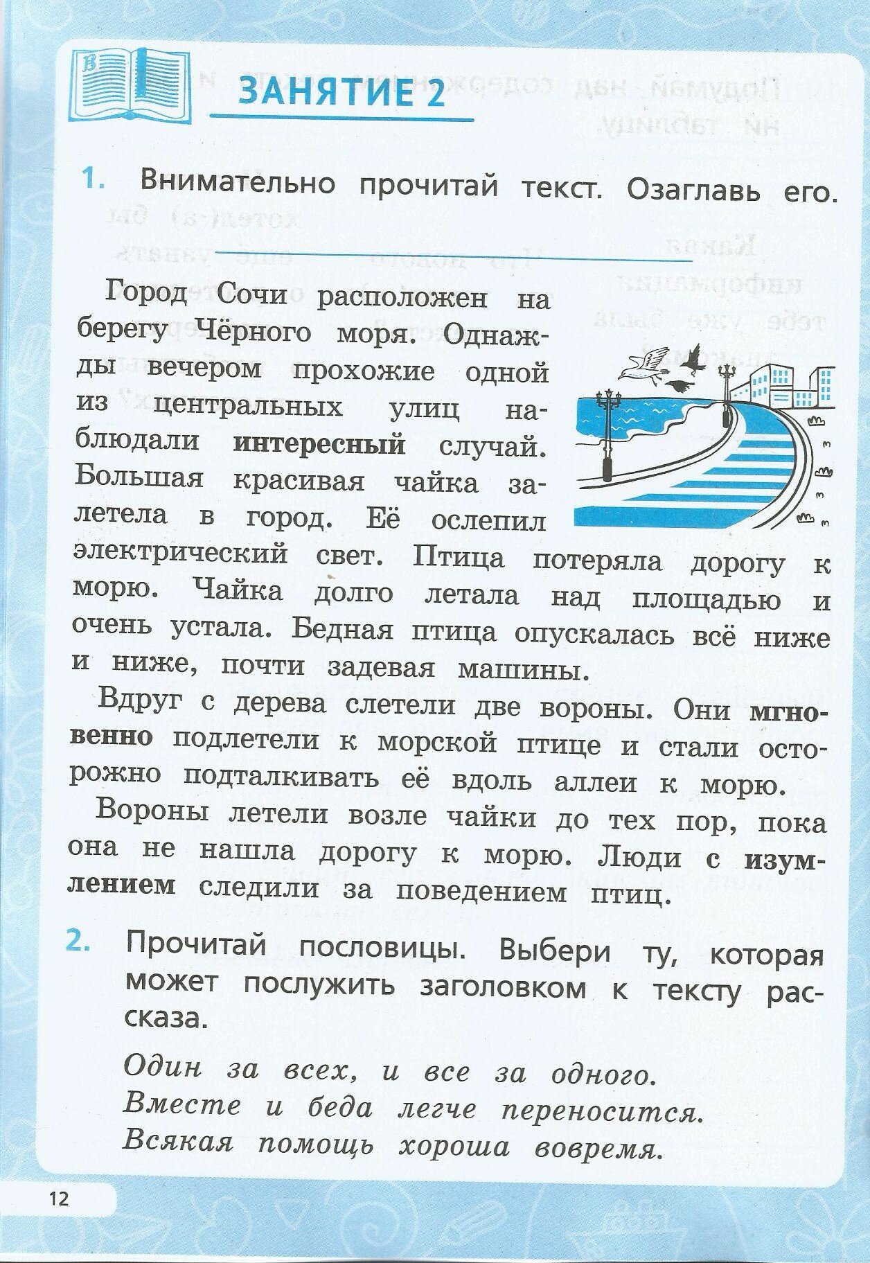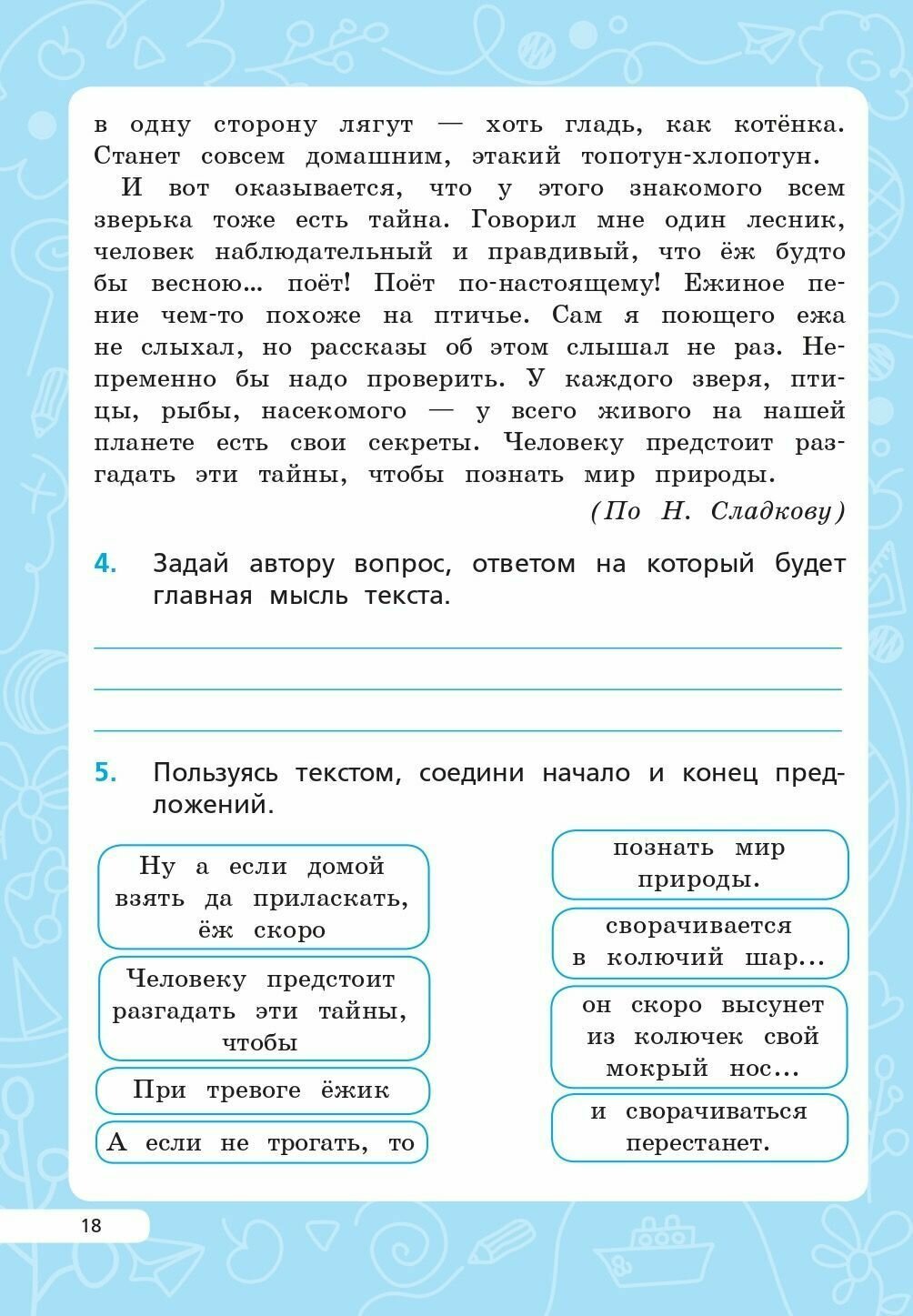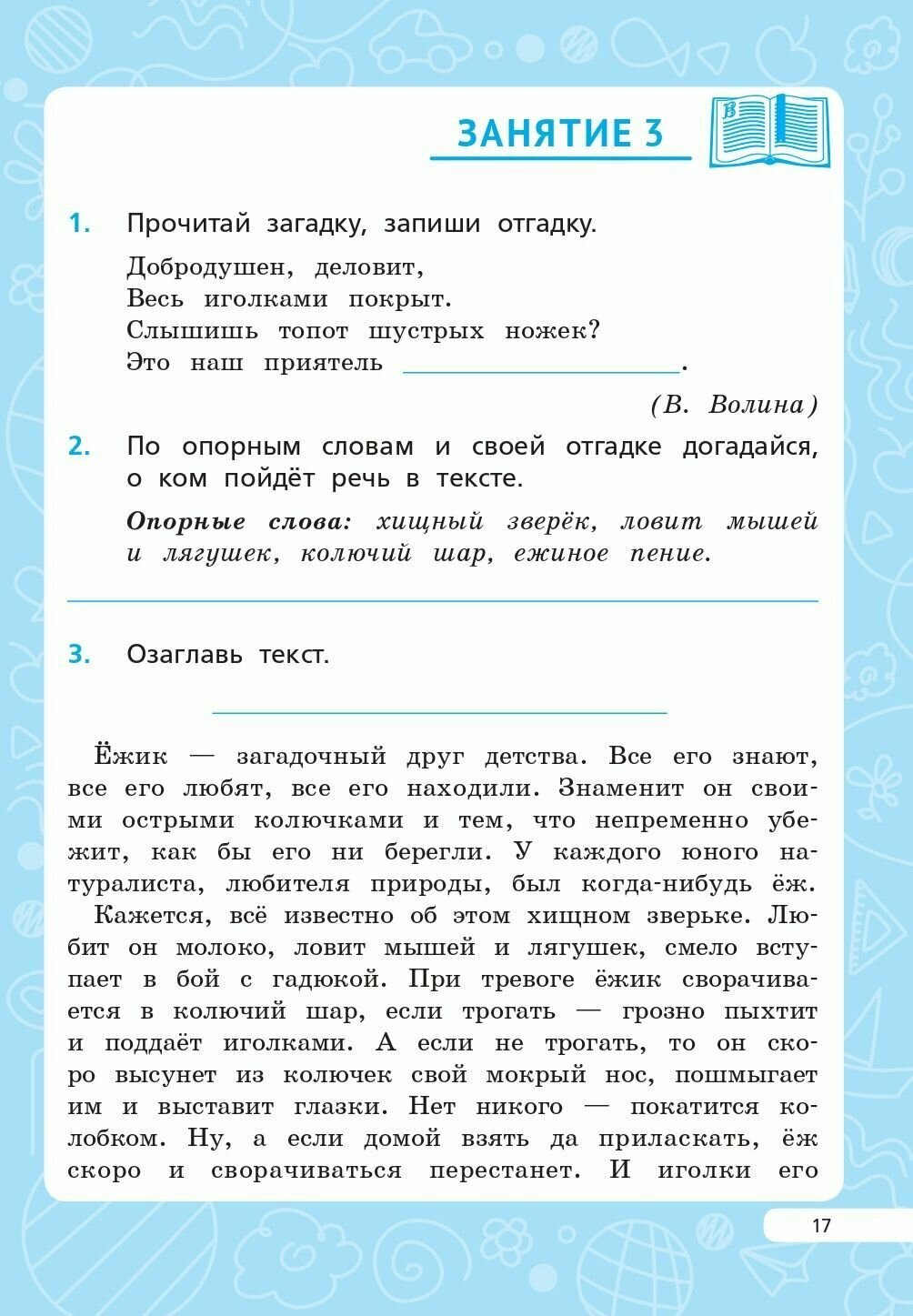 Пособие содержит 10 занятий с текстами и заданиями к ним. В нём представлены тексты различных стилей и жанров — от коротких рассказов до инструкций и научно-популярных материалов. В пособии много рисунков и творческих заданий, что способствует развитию у детей воображения и рефлексии, побуждает их к поиску собственных решений проблемных задач.