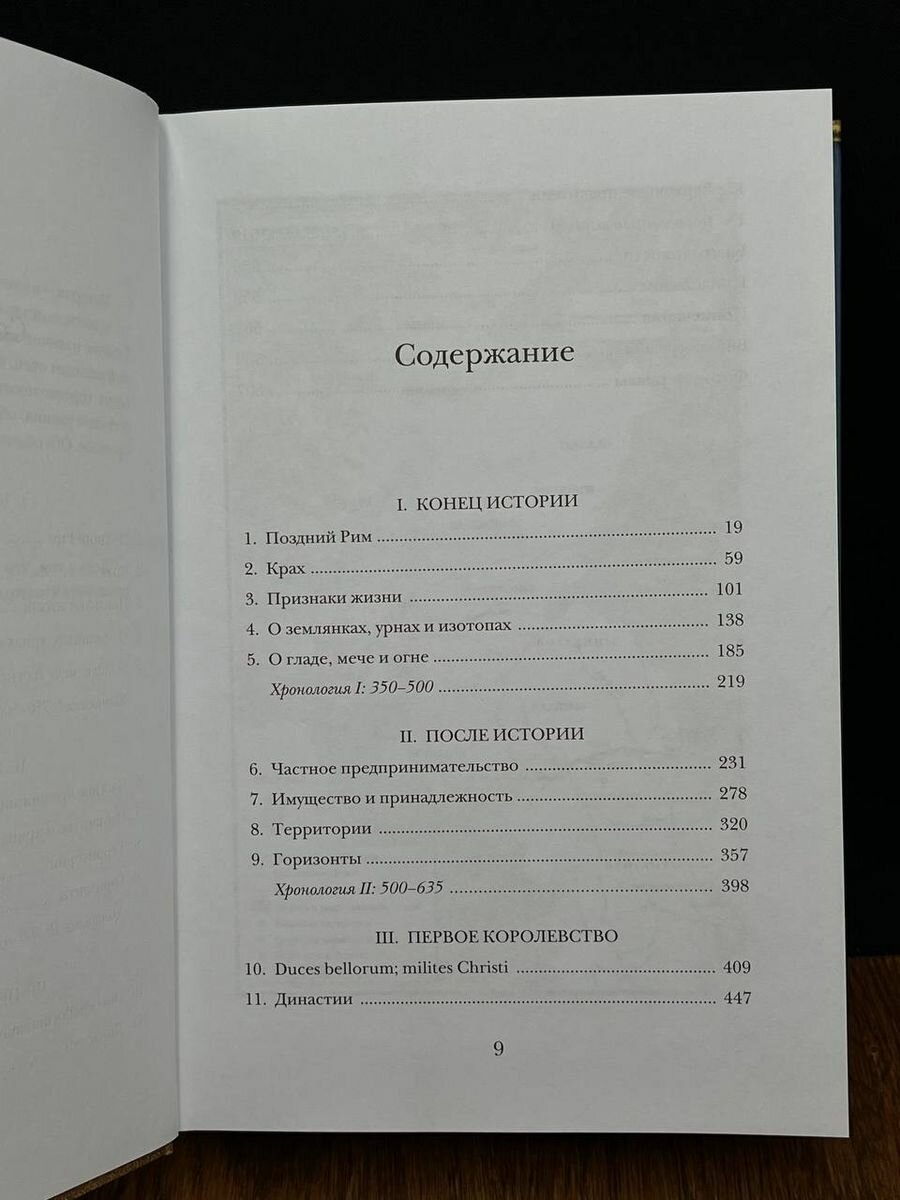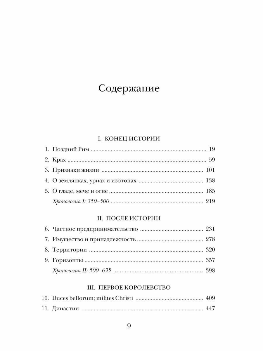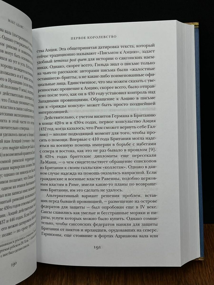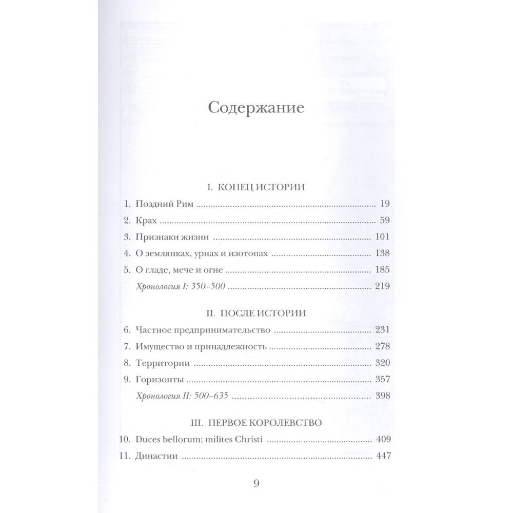 «От общей картины тех двух веков истории Британии, что последовали за начавшимся около 400 года кризисом, предварявшим крушение Западной Римской империи, остались лишь фрагменты. Сложно составить из них четкую последовательность и рассказать историю тех бурных, загадочных времен — историю того, как в Британии возникли первые королевства раннего Средневековья. И тем не менее гора фрагментов, собранных исследователями за последние десятилетия, поражает своими размерами. Даже если исходный сюжет восстановить не удается, есть возможность увидеть сцену, на которой разыгрывалась драма, и населить ее персонажами... Даже от отдельных стоп-кадров трудно оторвать взгляд: это обрывки истории, начало которой теряется во тьме, а конец описан несколько столетий спустя прославленным книжником раннего Средневековья Бедой Достопочтенным… Завершающие эпизоды этой истории поданы не с ретроспективной точки зрения, а в контексте эпохи возникновения новых институтов и социальных связей, хотя участники событий оставили нам очень мало свидетельств. Повествование здесь превратилось в созерцательную историю». (Макс Адамс)