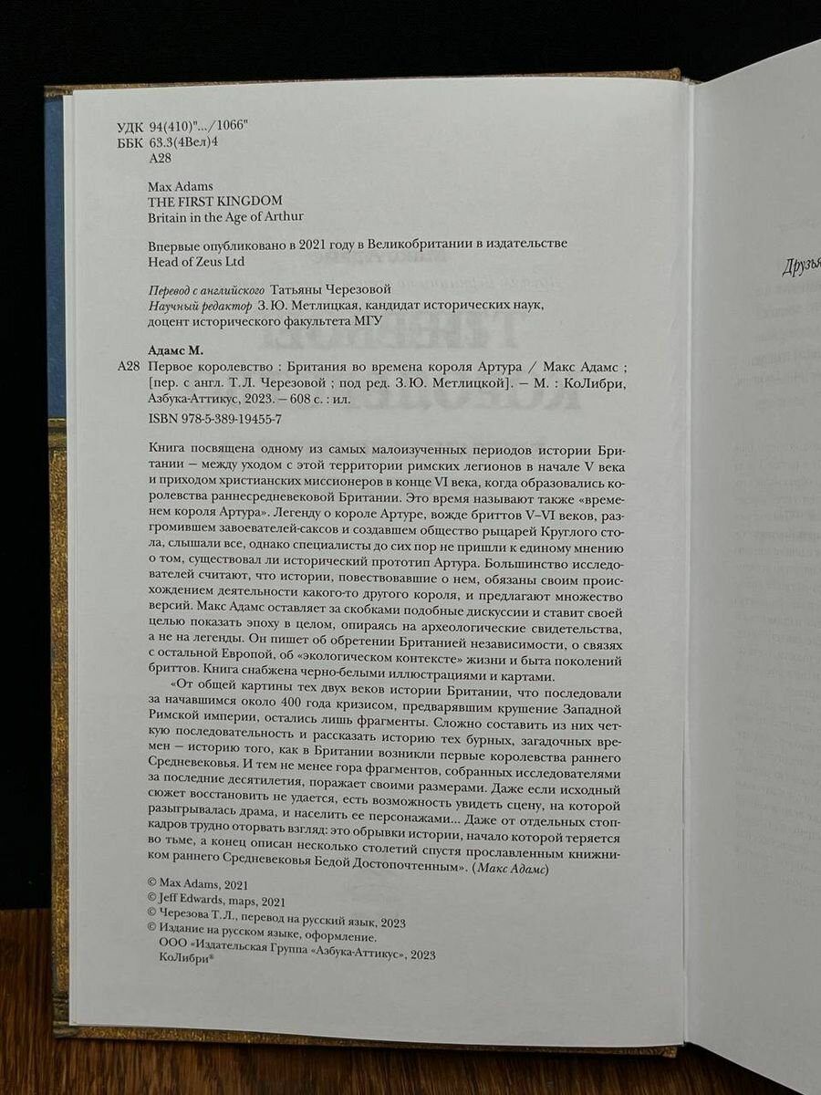 Книга посвящена одному из самых малоизученных периодов истории Британии — между уходом с этой территории римских легионов в начале V в. и приходом христианских миссионеров в конце VI в., когда образовались королевства раннесредневековой Британии. Это время называют также «временем короля Артура». Легенду о короле Артуре, вожде бриттов V–VI вв., разгромившем завоевателей-саксов и создавшем общество рыцарей Круглого стола, слышали все, однако специалисты до сих пор не пришли к единому мнению о том, существовал ли исторический прототип Артура. Большинство исследователей считают, что истории, повествовавшие о нем, обязаны своим происхождением деятельности какого-то другого короля, и предлагают множество версий. Макс Адамс оставляет за скобками подобные дискуссии и ставит своей целью показать эпоху в целом на историческом материале, а не на основе мифов. Он пишет об обретении Британией независимости, о связях с остальной Европой, об археологических исследованиях, в том числе об «экологическом контексте» жизни и быта поколений. Книга снабжена черно-белыми иллюстрациями и картами.