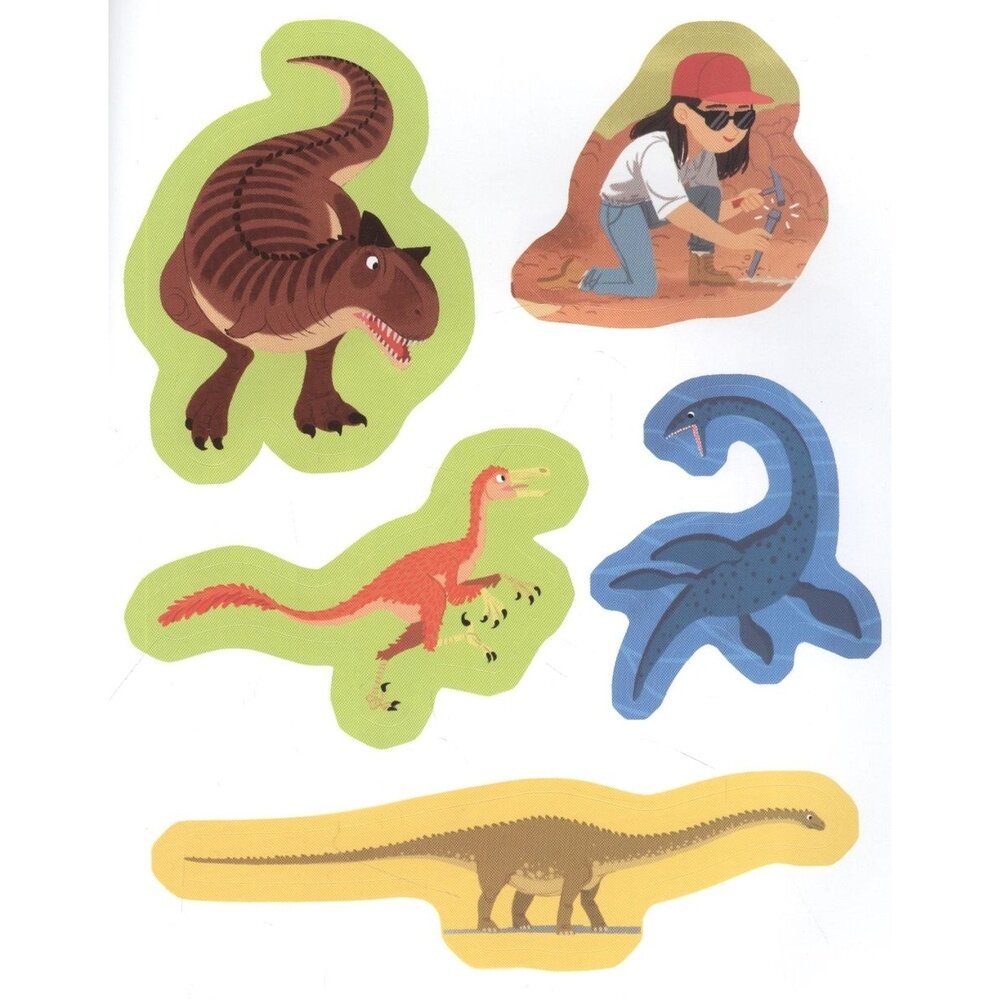 Мир динозавров чрезвычайно разнообразен! Среди них ты найдёшь грозных хищников и мирных гигантов, бронированных ящеров с клювом и рептилий, покрытых перьями. Подбери подходящие наклейки и помоги палеонтологам изучить всех вымерших животных.