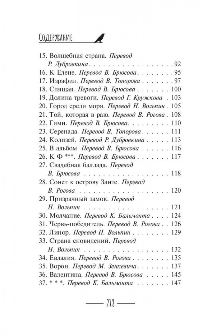 Потрясающий сборник стихов По Эдгара Аллана! У книги отличное оформлением, есть детали на страницах со стихами. В начале имеется биография, что отлично подойдёт новичкам , для знакомства с писателем, я не читала еще стихи , но начала и не смогла оторваться! По пишет разные стихи :светлые и печальные, мистические и таинственные, грустные, но всех их объединяют глубокие образы. Но единственное советую прочитать в оригинале тоже , а потом сравнить, возможно Вы , как и я увидите что- то новое! Советую всем