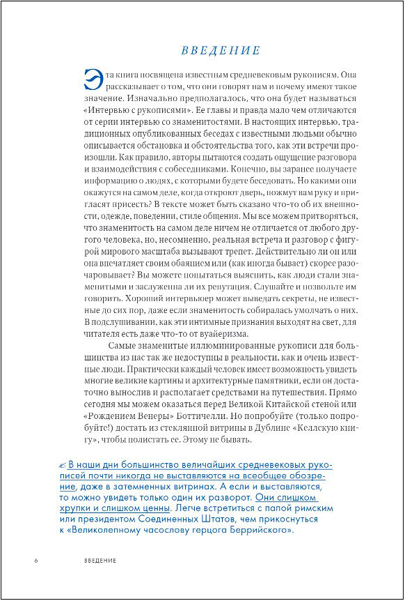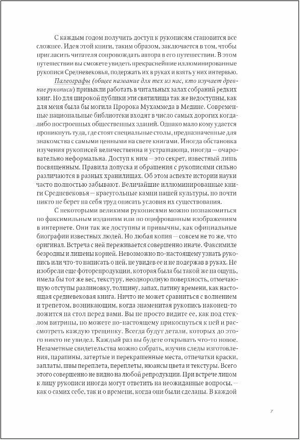 Книга принесёт массу удовольствия и большую пользу для любителей средневековых иллюминированных рукописей. Читатель получает возможность заглянуть хотя бы бегло, краем глаза, в книги, хранящиеся в известных музеях, знаменитых библиотеках (в том числе в ГПБ им. Салтыкова-Щедрина) и в частных собраниях. В книге приведены не только фотографии рукописей, но и библиотечных зданий и читальных залов (которые тоже считаются иллюстрациями), где работал автор.