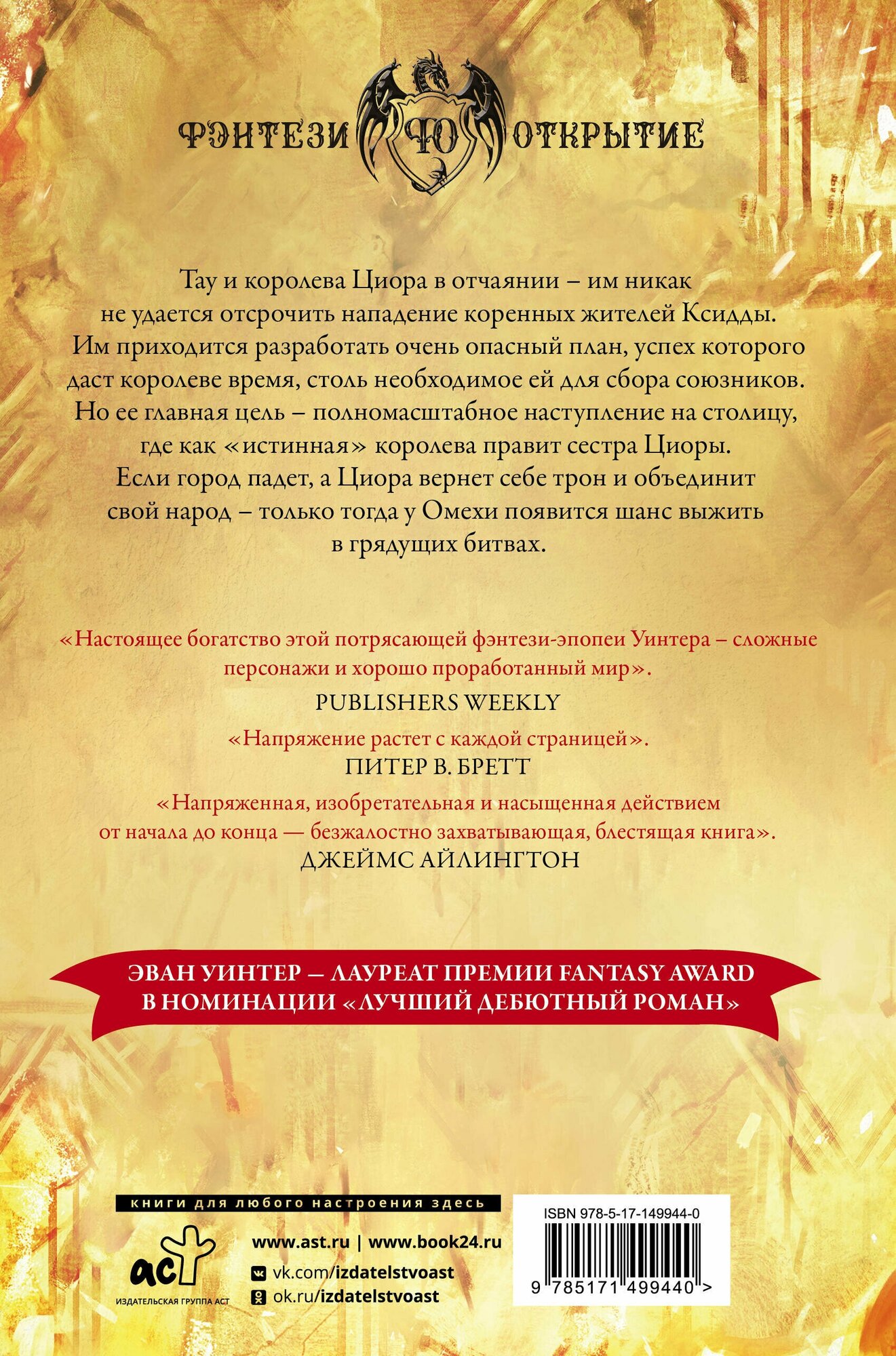 Тау и королева Циора в отчаянии — им никак не удается отсрочить нападение коренных жителей Ксидды. Им приходится разработать очень опасный план, успех которого даст королеве время, столь необходимое ей для сбора союзников. Но ее главная цель — полномасштабное наступление на столицу, где как «истинная» королева правит сестра Циоры. Если город падет, а Циора вернет себе трон и объединит свой народ — только тогда у Омехи появится шанс выжить в грядущих битвах.