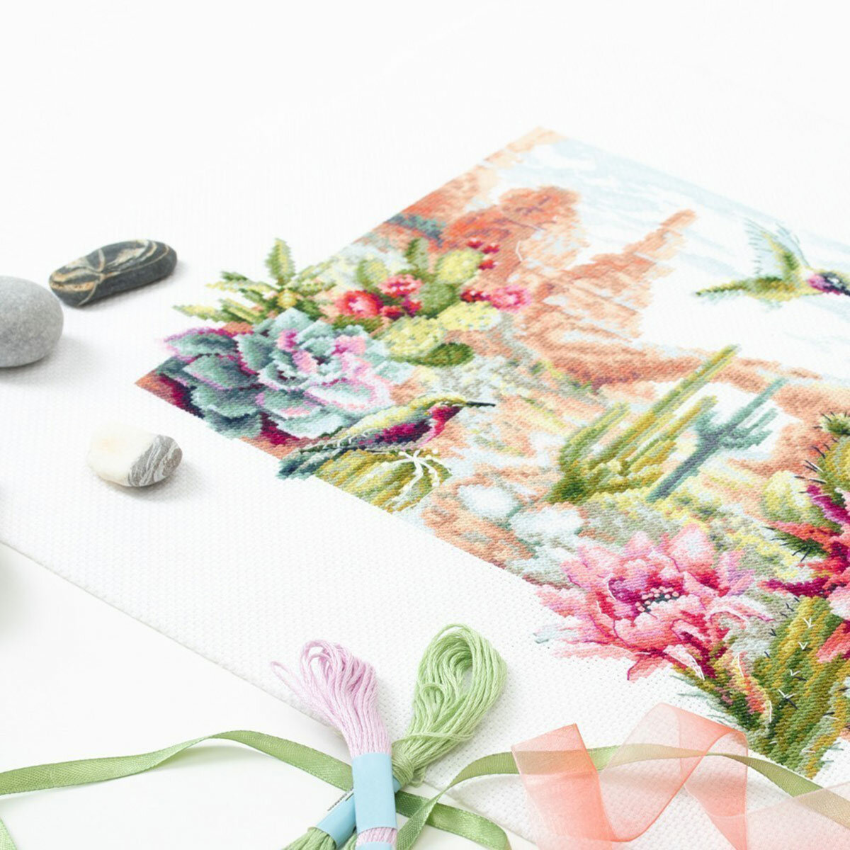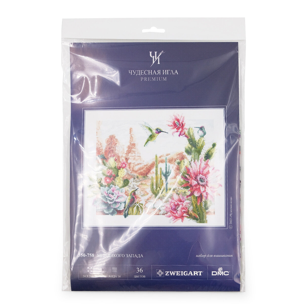 Набор для вышивания крестом: 350-758 Мир дикого запада. В комплекте: канва Аида 14 белая, ZWEIGART, мулине DMC, цветная символьная схема, игла, инструкция. Рамка, паспарту в комплект не входят - представлены как образцы готовых работ!