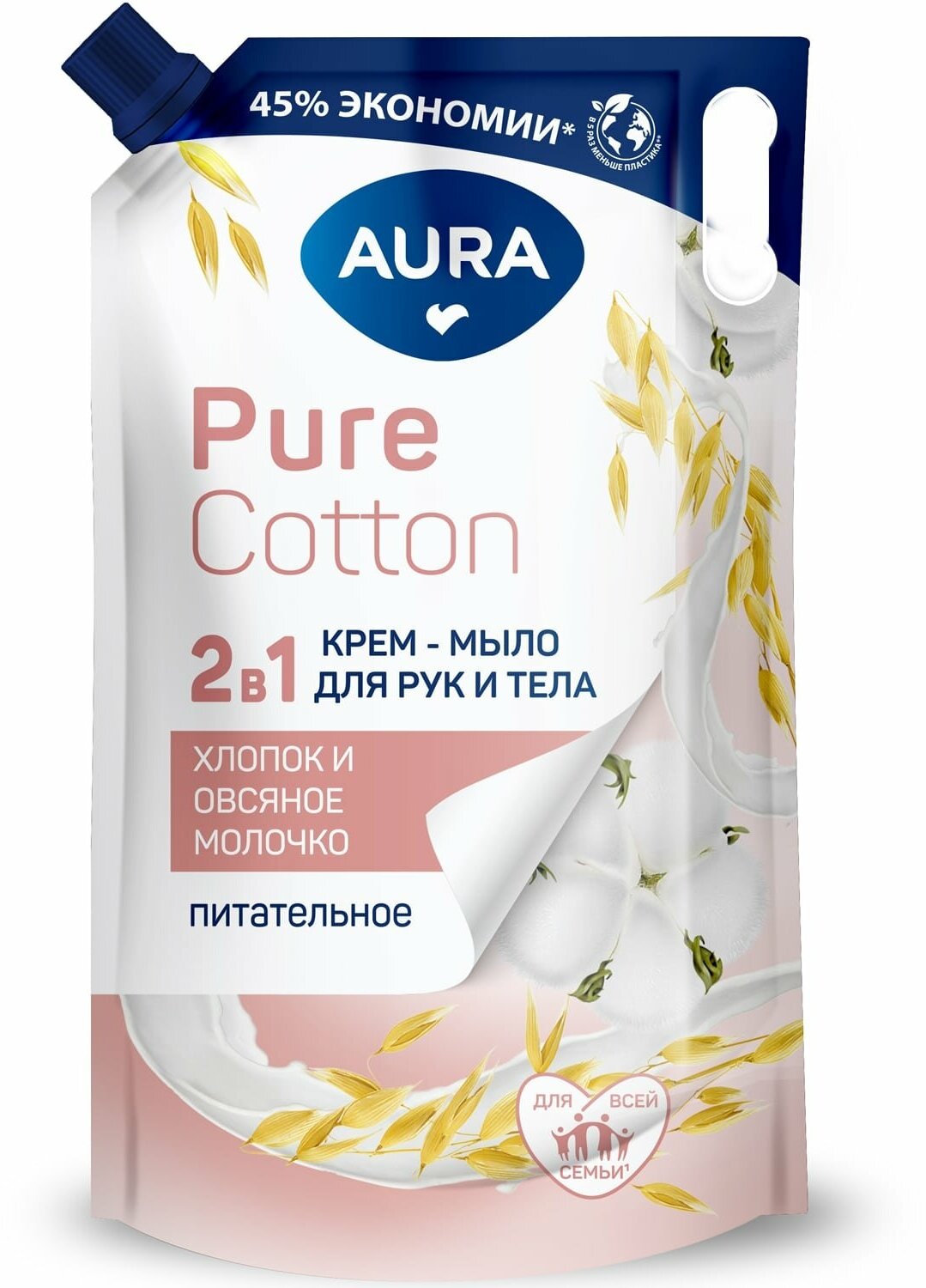 Питательное крем-мыло для рук и тела Pure Cotton с экстрактами хлопка и овсяного молочка 850 мл AURA (ЭХ99989437514)
