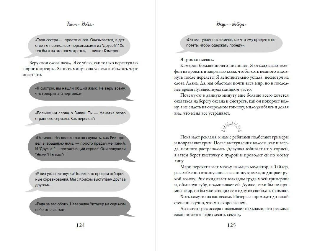 "Книга, пропитанная музыкой, адреналином и запахом океана. Она о свободе, о яркой и искренней любви, о правильном выборе в пользу своего счастья. Я влюбилась в чувственные описания Кейт Вэйл и ее живых героев, чья любовь помогает обрести себя и рискнуть всем". - Арина @maradyer.book