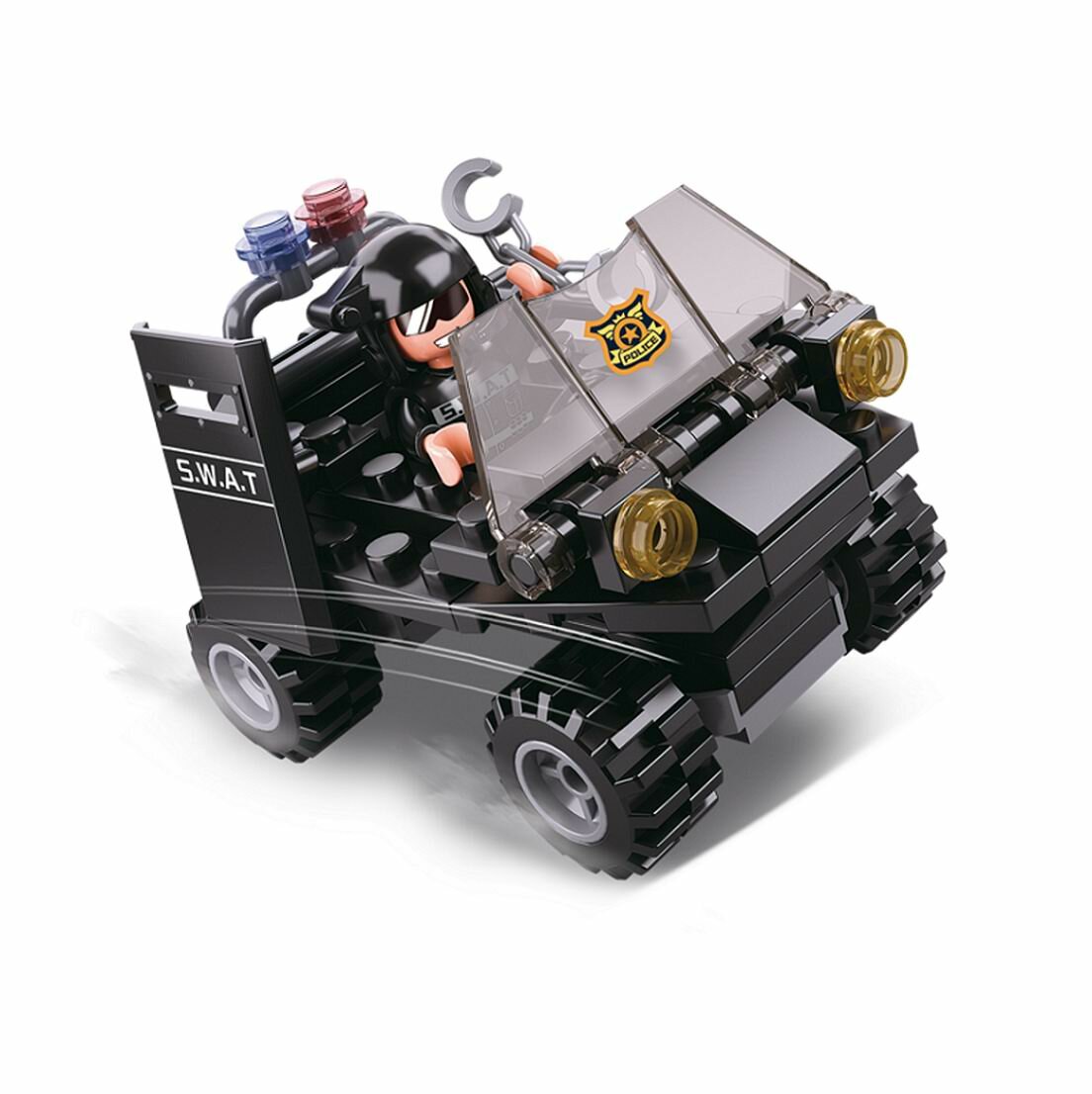 Конструктор Sluban из серии "Полиция" позволит ребенку собственными руками собрать модель штурмового авто. В комплект входит 1 полицейский. Для большей реалистичности, транспорт обладает подвижными элементами. Простое и надежное соединение деталей разных размеров и форм между собой обеспечат специальные крепления. Во время игры ребенок сможет задействовать свою фантазию и придумать интересные сценарии. В процессе сборки и игры с готовой моделью юный конструктор будет развивать мелкую моторику рук, пространственное мышление, внимательность и усидчивость.