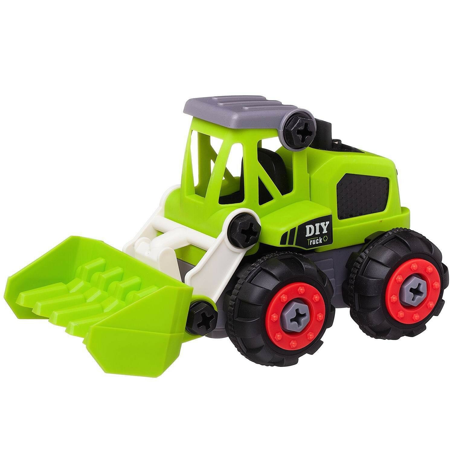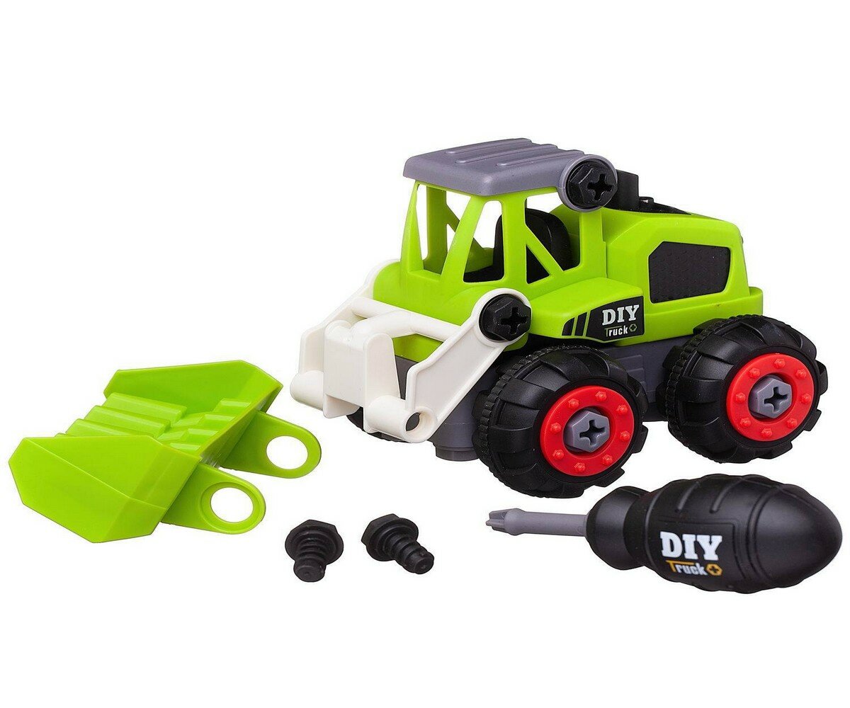 Машинка-конструктор "Трактор с ковшом-вилами" от бренда Junfa станет прекрасным дополнением коллекции машинок мальчика. Трактор выполнен в ярком, реалистичном дизайне, изготовлен из пластмассы. Он оснащен фрикционным механизмом, имеет большие колеса с рельефным рисунком протектора. В процессе игры дети смогут с помощью отвертки разбирать и снова собирать трактор, знакомясь с его устройством, будут имитировать погрузку, меняя положения подъемного ковша. Благодаря подвижным элементам игра с трактором будет более динамичной и правдоподобной, дети смогут придумать множество интересных сюжетных линий для увлекательной игры. Сюжетно-ролевые игры способствуют знакомству детей с назначением техники разных видов, принципами ее работы, тренируют моторику рук и координацию движений, развивают фантазию и воображение ребенка