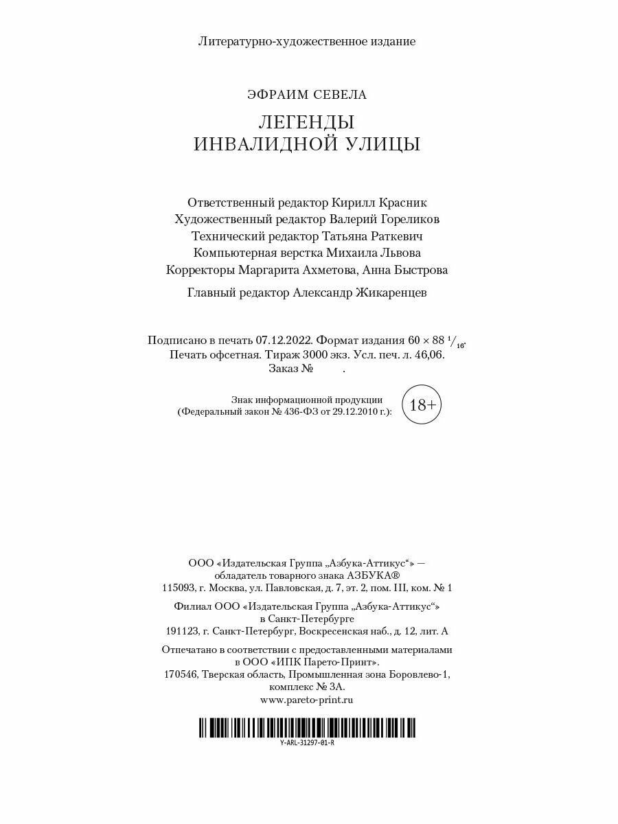 Книга: Легенды Инвалидной улицы (Эфраим Севела); Азбука, 2023