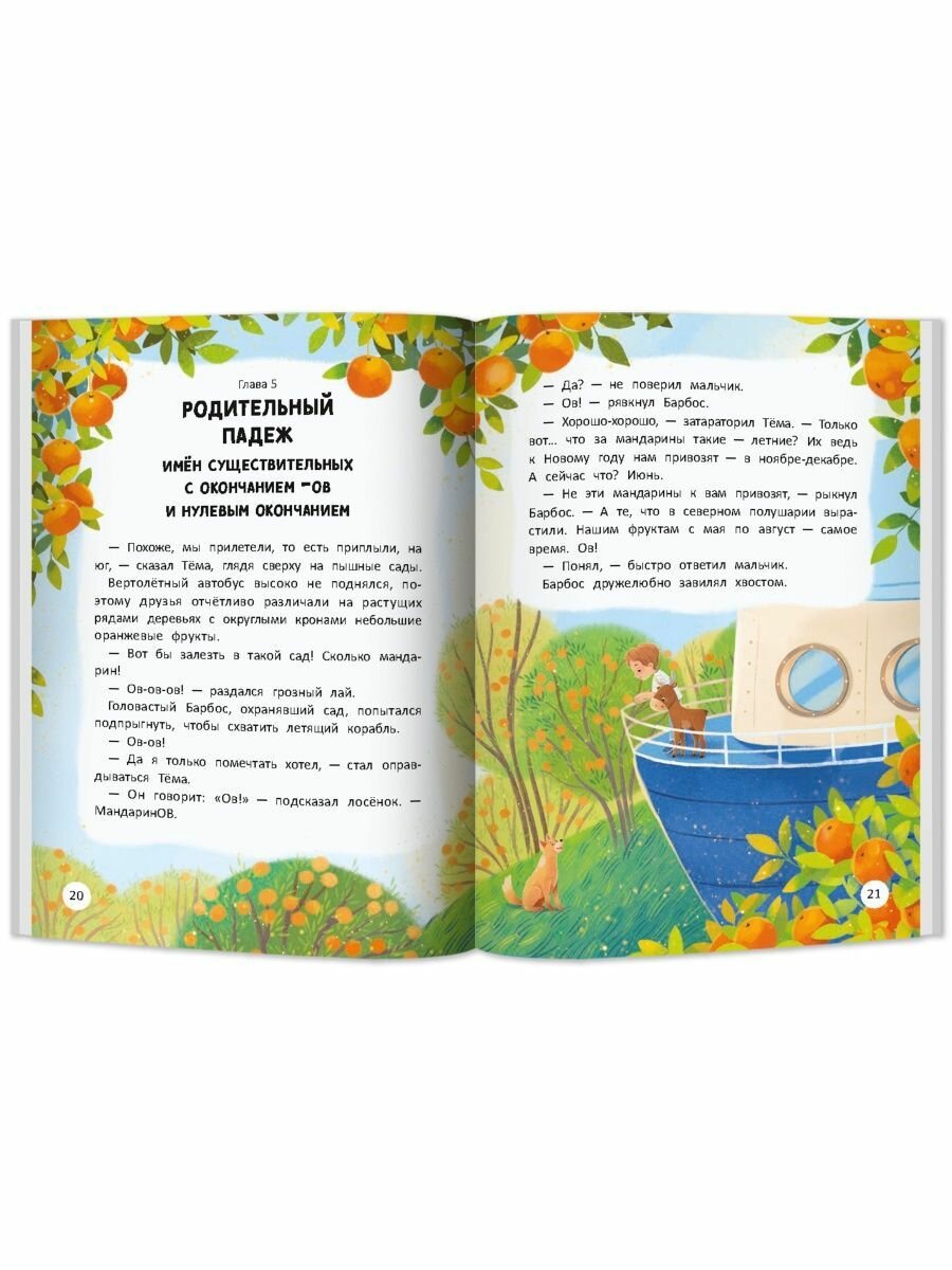 Автор также обыграл на примере приключений добрых героев многие принципы русского языка: как ставится ударение, что такое прямое и переносное значение слов, в чём заключается разница между падежами.