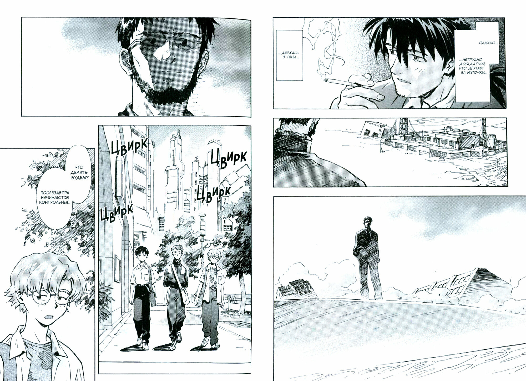 Отношения Синдзи с окружающими постепенно налаживаются — но только не с его отцом. Однако в годовщину смерти матери Синдзи встречается с ним у её могилы, и им удаётся поговорить, хотя разговор оказывается не из лёгких… Пока командующий находится в антарктической экспедиции, Евы впервые противостоят Ангелу втроём, а Кадзи раскрывает Синдзи некоторые из секретов NERV. Между тем из Америки в Японию переправляют Еву-03, и подходящим кандидатом в пилоты становится Тодзи Судзухара. Синдзи убеждает друга, что бояться нечего, но активационные испытания идут совсем не так, как запланировано…