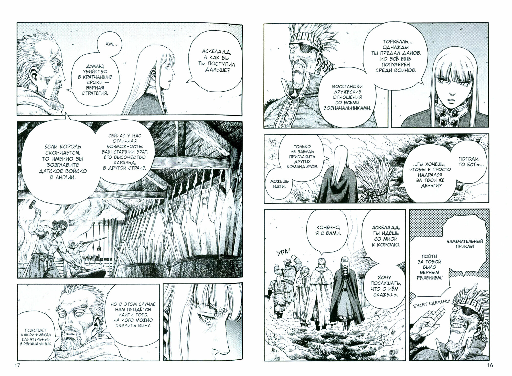 И завершение, честно сказать, просто сногсшибательное. Несмотря на то, что я уже читала эти главы в 2018 и видела 1 сезон аниме, держать в руках печатную версию и рассматривать эти потрясающе красивые страницы все равно приятнее. Невероятные повороты и противостояние короля Свена и его сына Кнуда, ох... Аскеладд действительно великий персонаж.