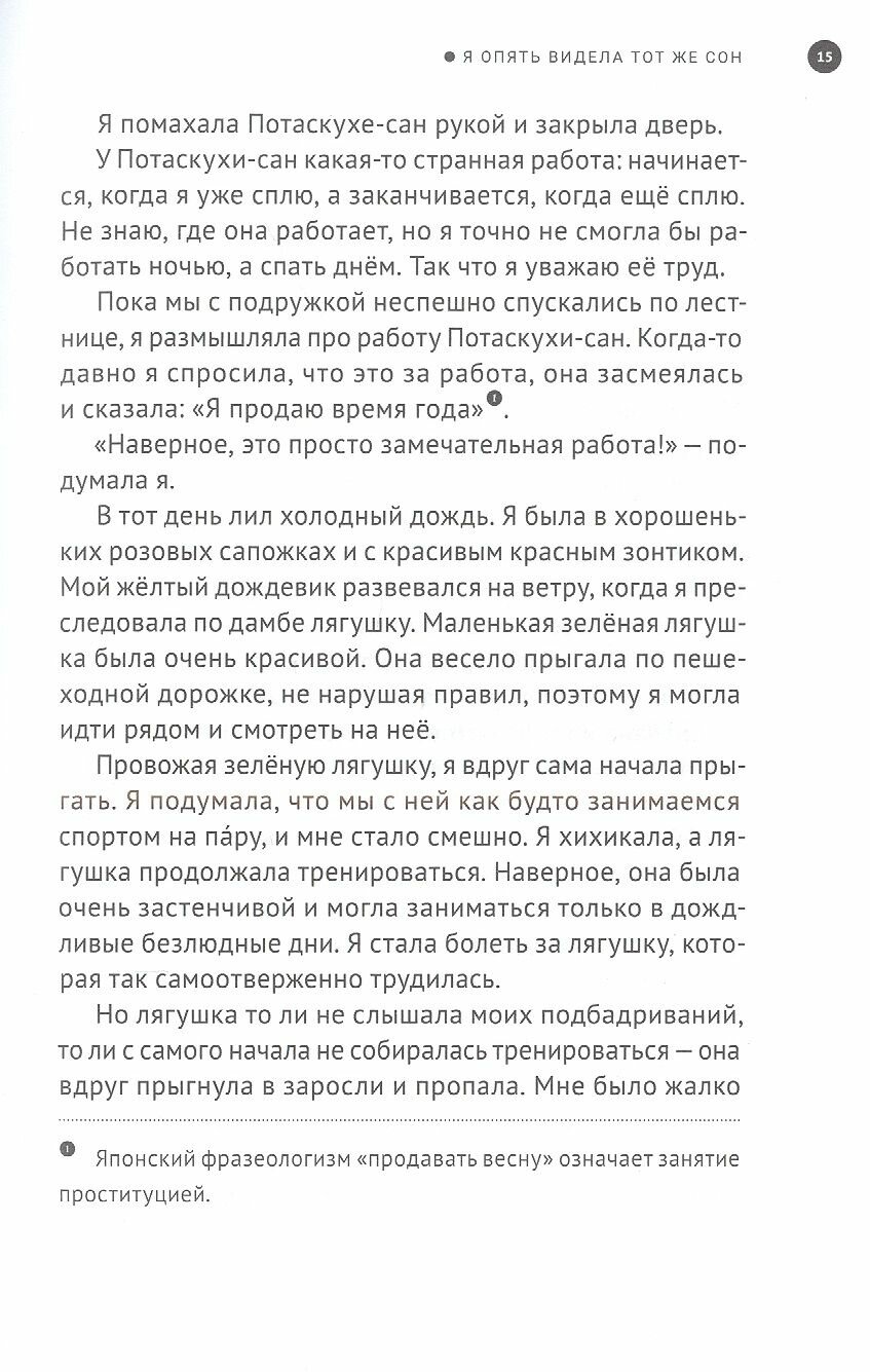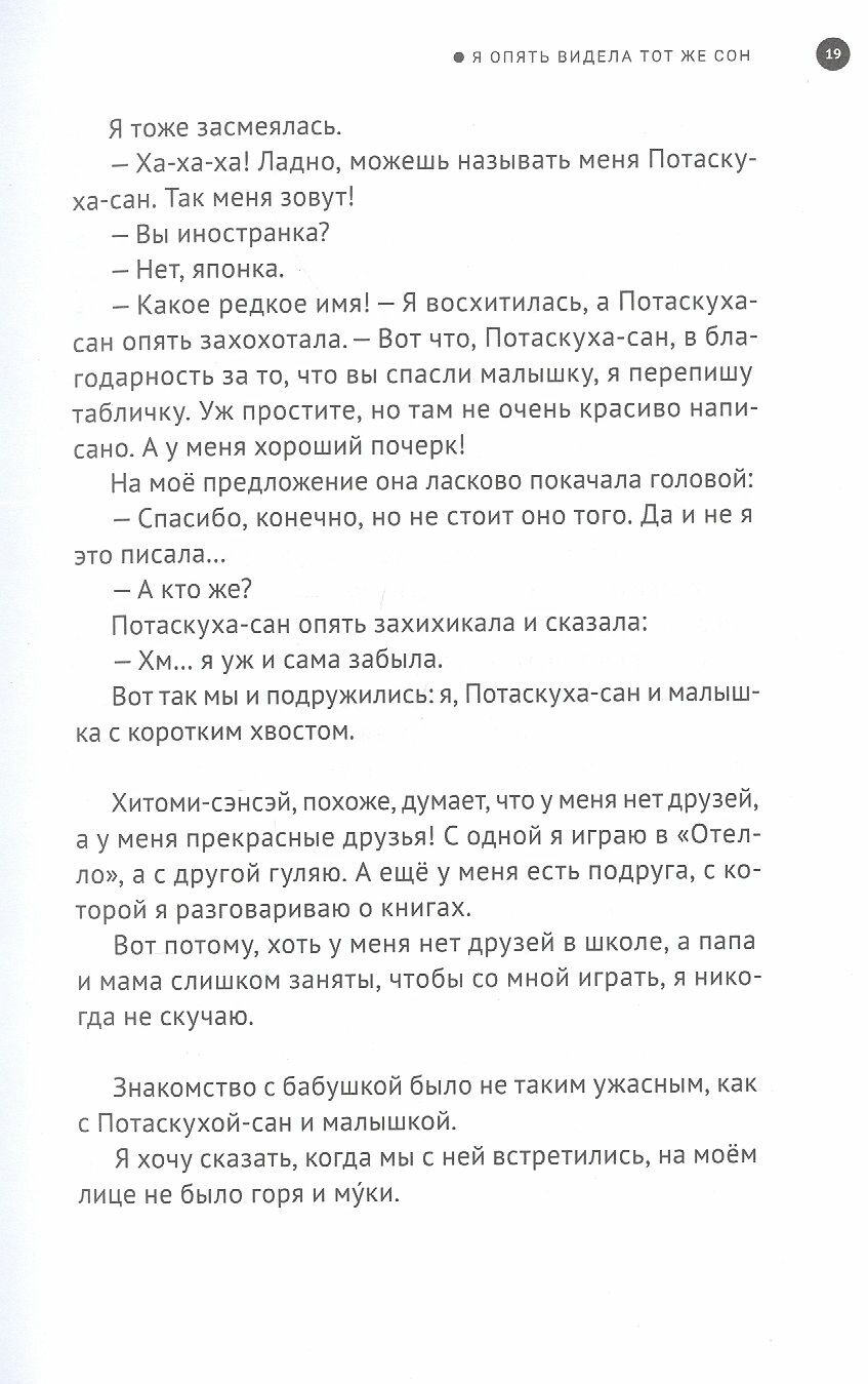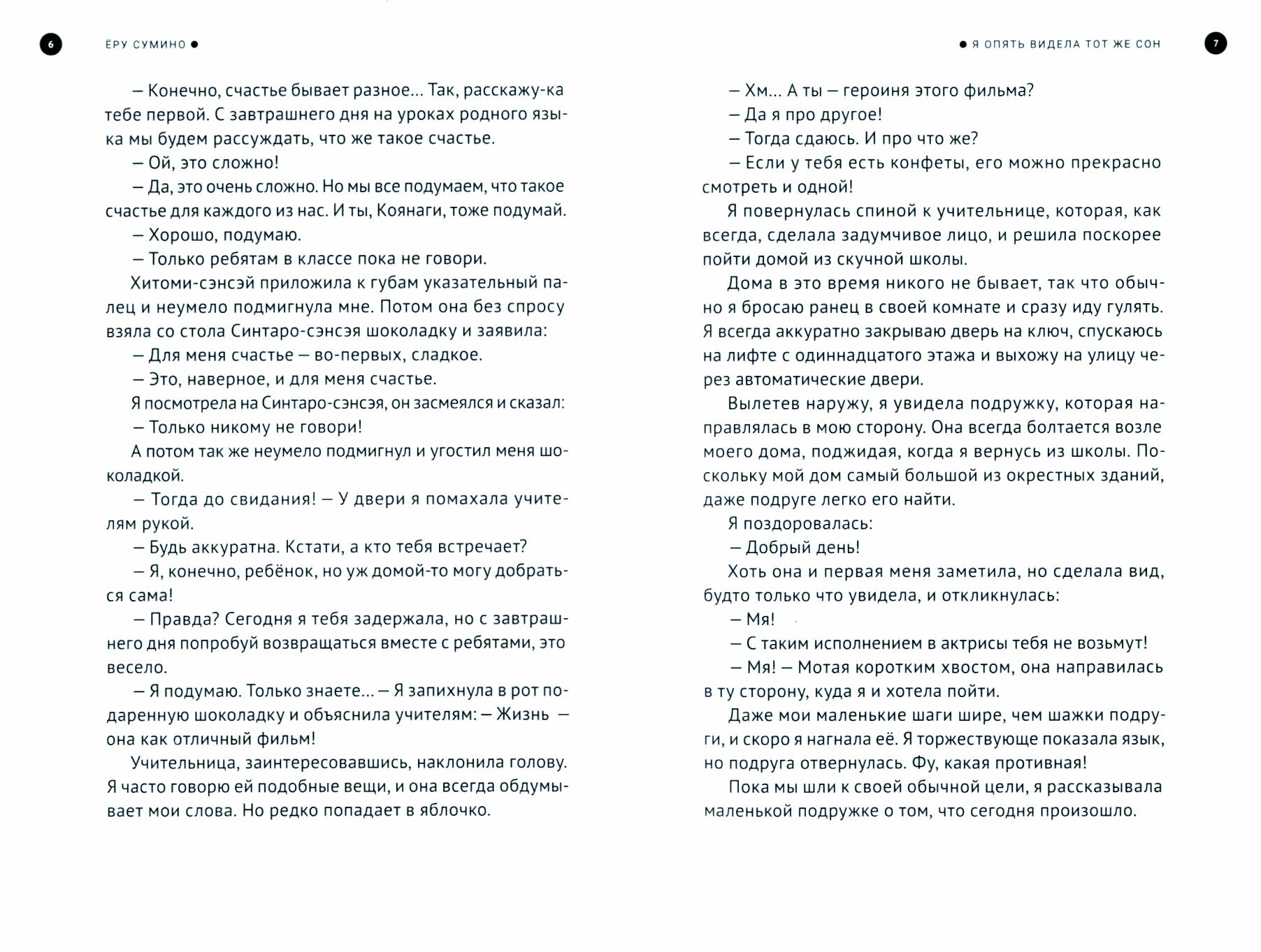 Невероятно люблю работы Ему Сумино, поэтому как только увидела её новую книгу \"Я опять видела тот же сон\", сразу же приобрела! Ожидания полностью оправдались! Книга действительно невероятно интересная! Персонажи весьма колоритные и за ними любопытно наблюдать! Главная героиня меня покорила, её непосредственность, самостоятельность и детское высокомерие... Однозначно рекомендую к прочтению!