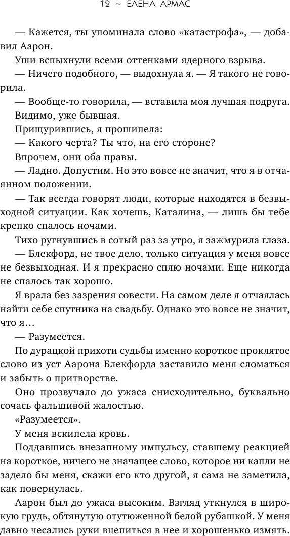 Красивый и заносчивый Аарон Блэкфорд, коллега Каталины, предлагает ей помощь. Приближается день свадьбы, и Каталина понимает: Аарон – единственный выход.