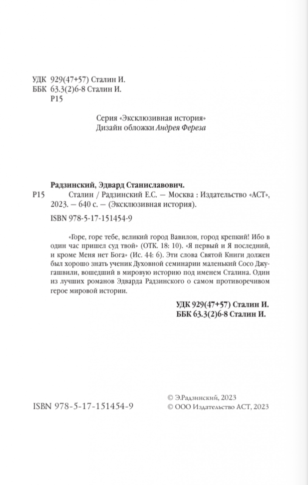 Книга: Сталин (Радзинский Эдвард Станиславович); ИЗДАТЕЛЬСТВО "АСТ", 2023