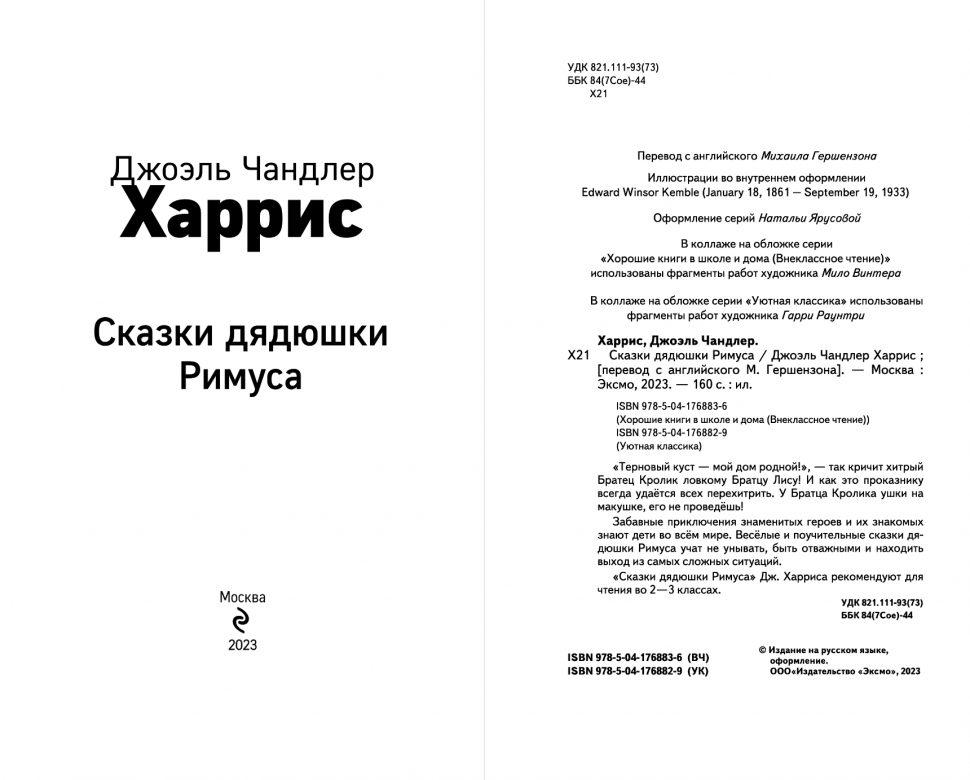 Книга: Сказки дядюшки Римуса (Харрис Джоэль Чандлер); ООО "Издательство "Эксмо", 2023