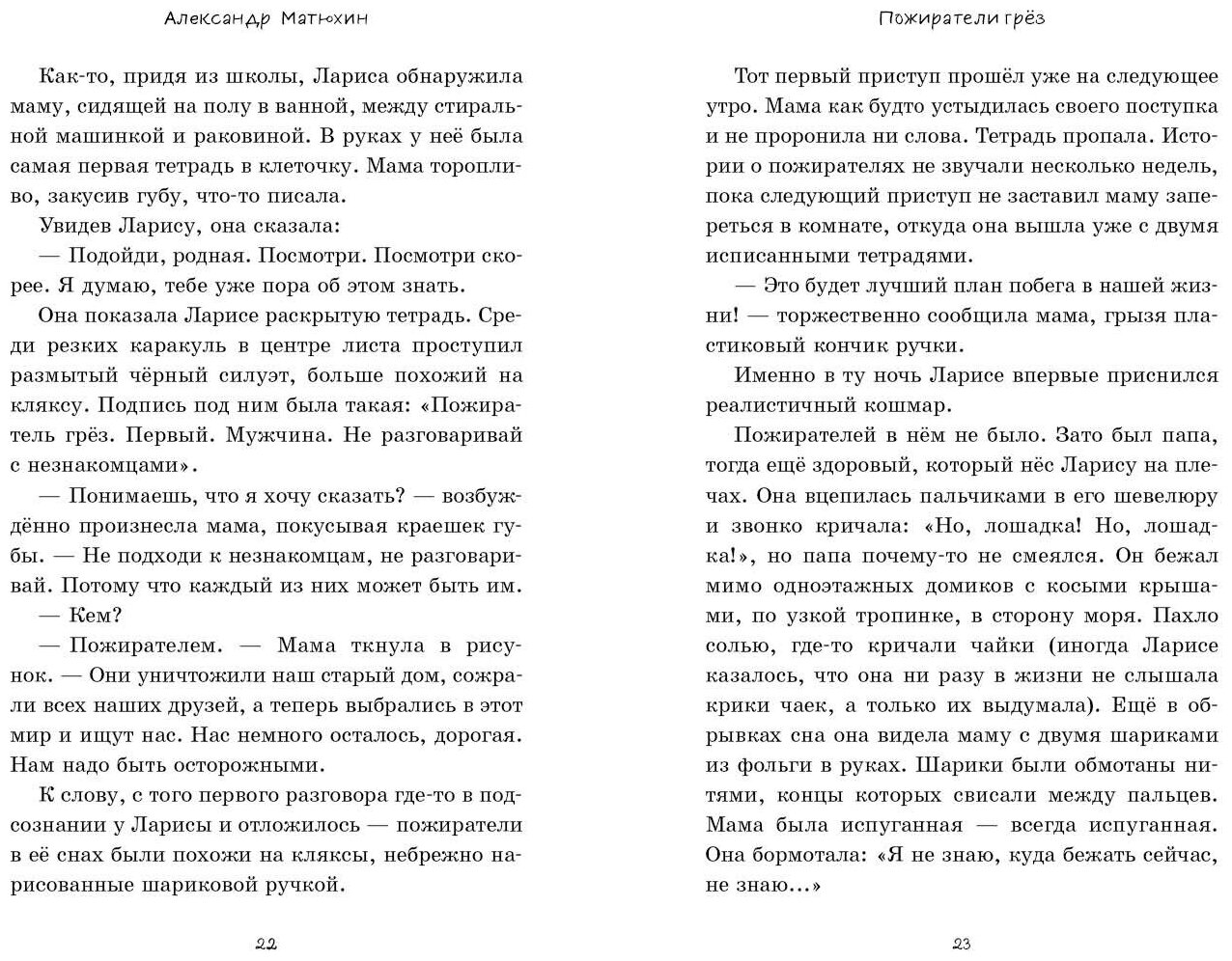 От автора "Города Спящих"! Мама Ларисы верит, что за их семьёй охотятся Пожиратели грёз, чудовища из другого мира. О странностях мамы быстро узнали в школе, и Лариса растеряла всех друзей. А потом она сама увидела Пожирателей… Димка как-то раз встречает на заброшенной заправке призрака! После этого мальчик разболелся и бормотал что-то о "вкусе грёз". Он и представить не мог, что невольно соорудил тоннель между мирами! И теперь Пожиратели грёз начинают охоту за ним и Ларисой — подростками, которые знают об их существовании и могут остановить!