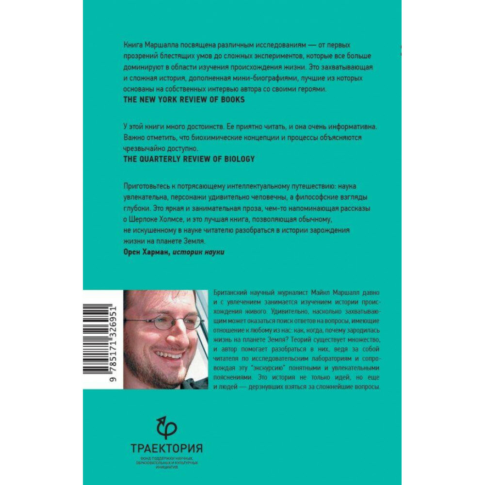 Перед вами захватывающая книга о поиске ответов на один из главных научных вопросов нашего времени: как возникла жизнь на Земле? Научный журналист Майкл Маршалл рассказывает историю этих исследований, начиная с первых попыток советских ученых в 1920-х годах до современных открытий.