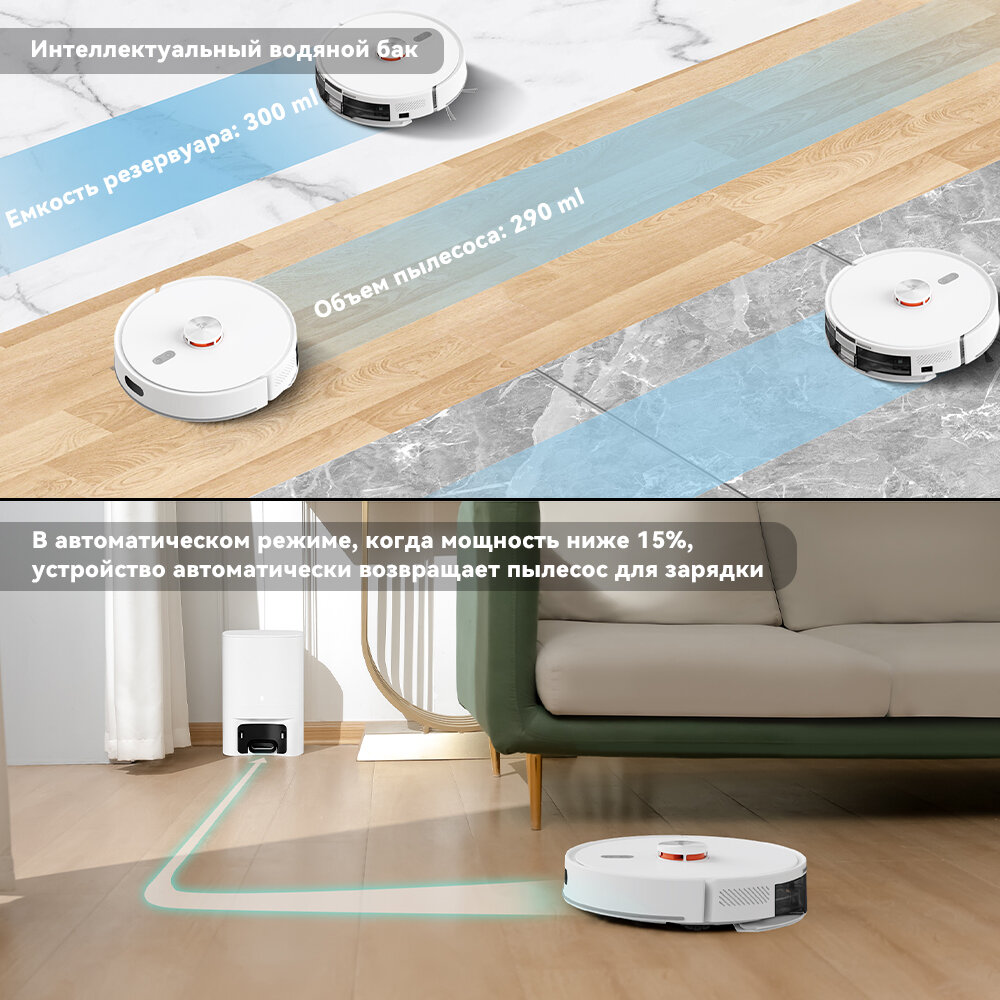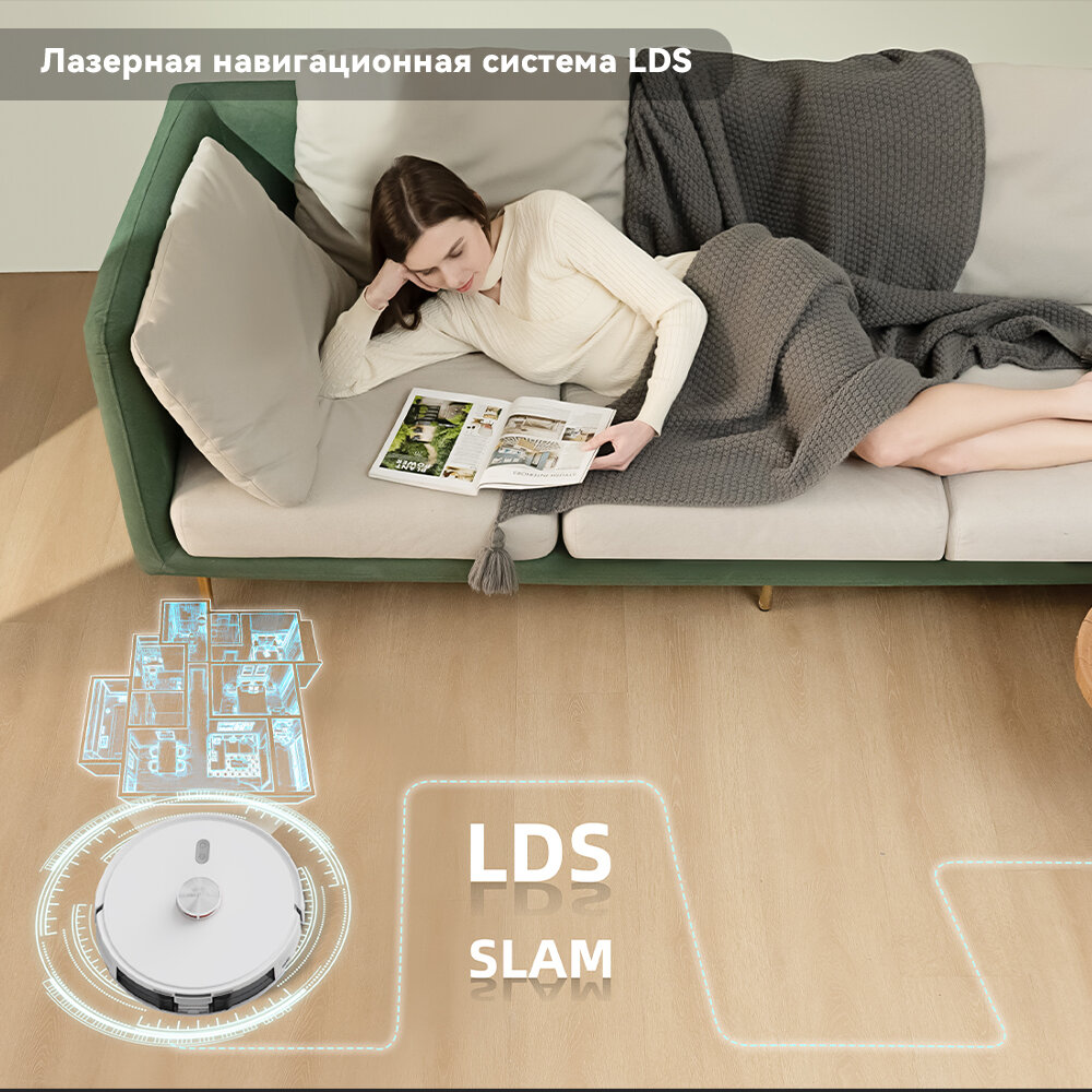 Интеллектуальный моющий робот-пылесос с бесщеточным двигателем одинаково хорошо справляется как с сухой, так и с влажной уборкой пола. Максимальная мощность всасывания составляет 2700 Па. Радиолокационный лазерный датчик LDS2.0 всесторонне сканирует пространство и обеспечивает пылесосу точную навигацию на карте. При обнаружении препятствий, устройство автоматически корректирует маршрут и ищет решения для их обхода. Частота и дальность сканирования позволяют лучше справиться с уборкой помещения, исключая повторений и слепых зон.