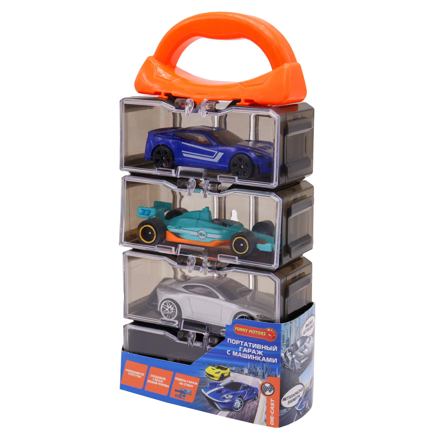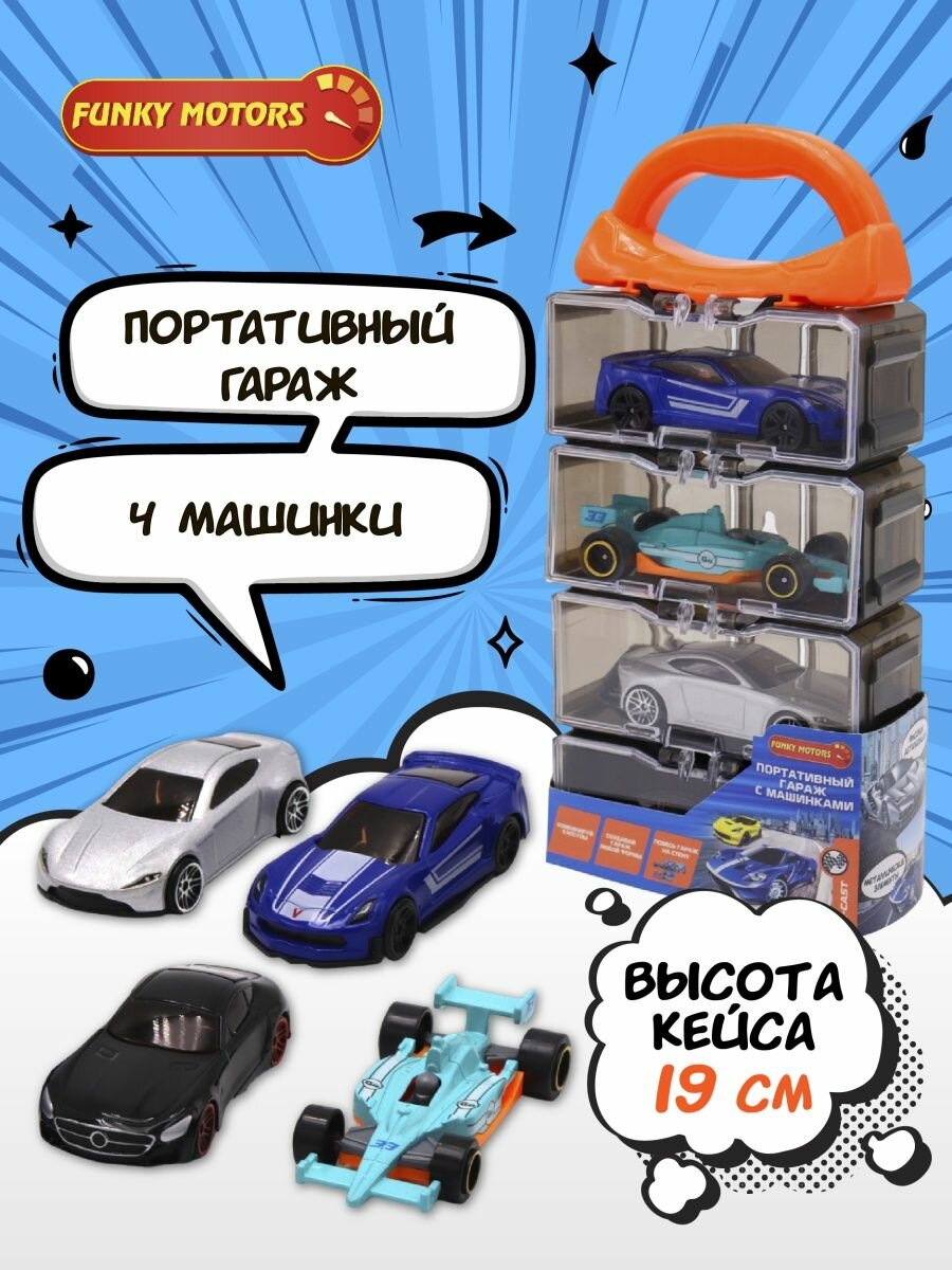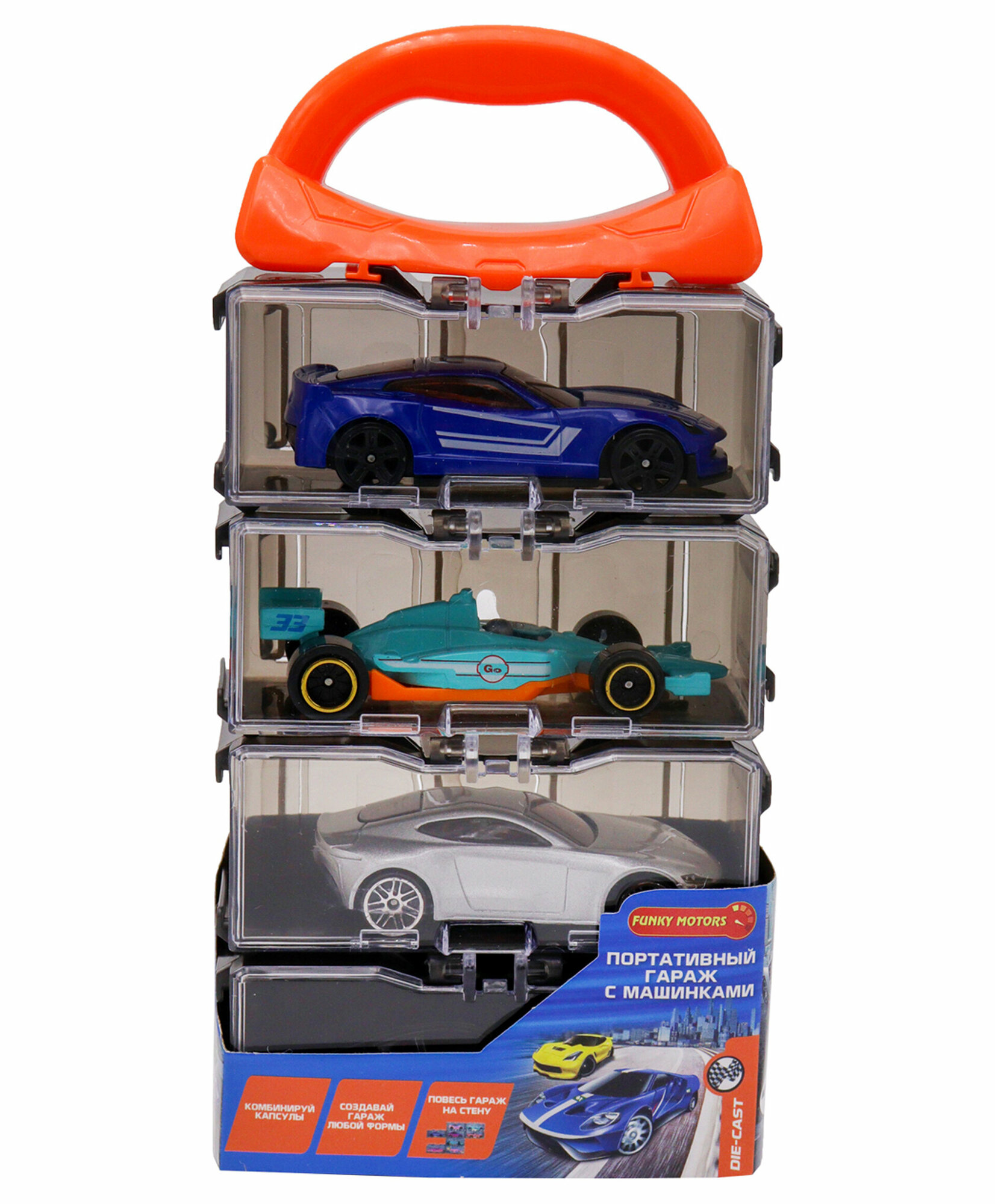 Игровой набор с коллекционными машинками Funky Motors выполнены в масштабе 1 к 64. Металлические элементы машинки наделяют ее ударопрочностью, а высокая степень детализации добавит еще большей реалистичность в игру. Портативный кейс позволит брать любимую коллекцию машин на прогулку, отдых или в путешествие, а также кейс для машинок можно использовать, как парковку или гараж.