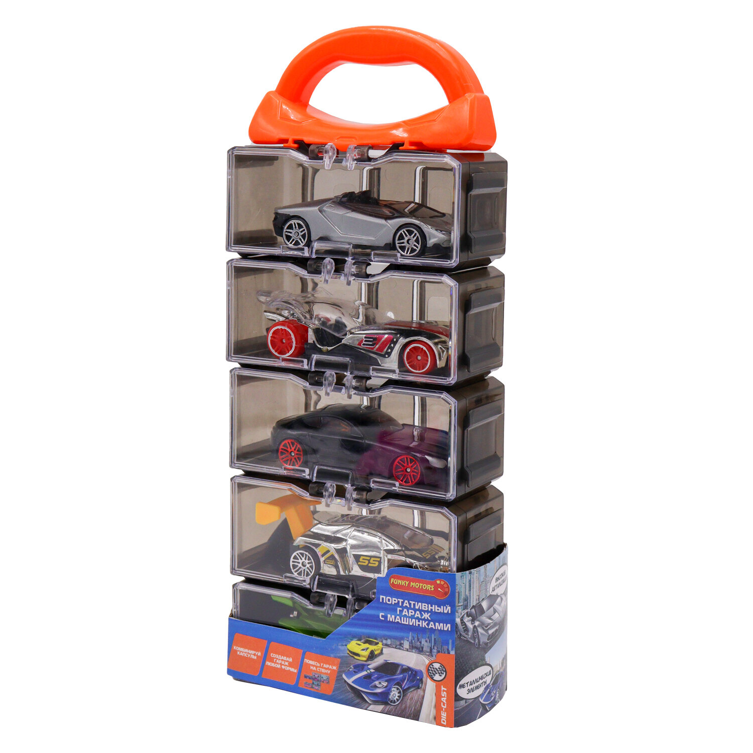 Игровой набор с коллекционными машинками Funky Motors выполнены в масштабе 1 к 64. Металлические элементы машинки наделяют ее ударопрочностью, а высокая степень детализации добавит еще большей реалистичность в игру. Портативный кейс позволит брать любимую коллекцию машин на прогулку, отдых или в путешествие, а также кейс для машинок можно использовать, как парковку или гараж.