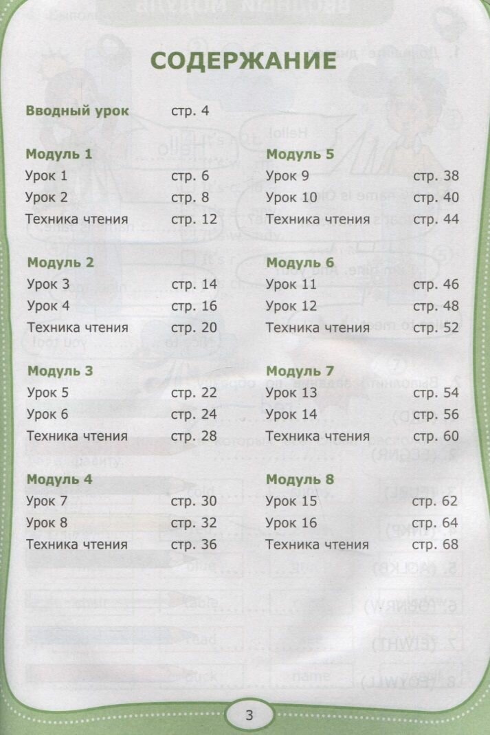Рабочая тетрадь включает в себя 150 заданий для самостоятельной работы учащихся. Задания способствуют лучшему усвоению, закреплению и повторению материала учебника. Ключи даны в "Книге для родителей. 3 класс", выпущенной издательством "Экзамен". На вкладке даны Словарь в картинках и Грамматический справочник.
