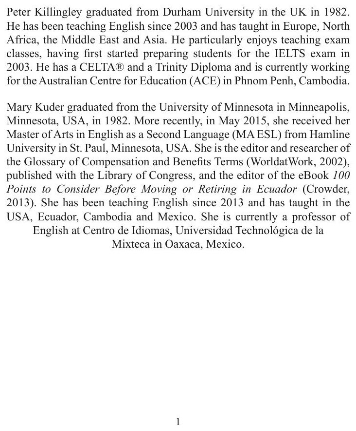 This book is invaluable for all the students preparing for the IELTS exam. It contains essential topic-specific vocabulary for the exam, divided into 20 topics, as well as two separate sections on useful vocabulary for the writing exam, including collocations. There is also a section on idiomatic language that can be used in speaking exam. Exercises throughout the book reinforce the vocabulary so that it becomes active, enabling you to use it in the exam and boost your IELTS band score.