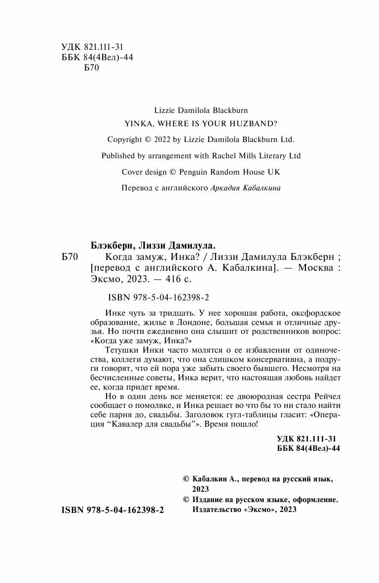 Книга: Когда замуж Инка? (Лиззи Дамилула Блэкберн); Эксмо, Inspiria, Редакция 1, 2023