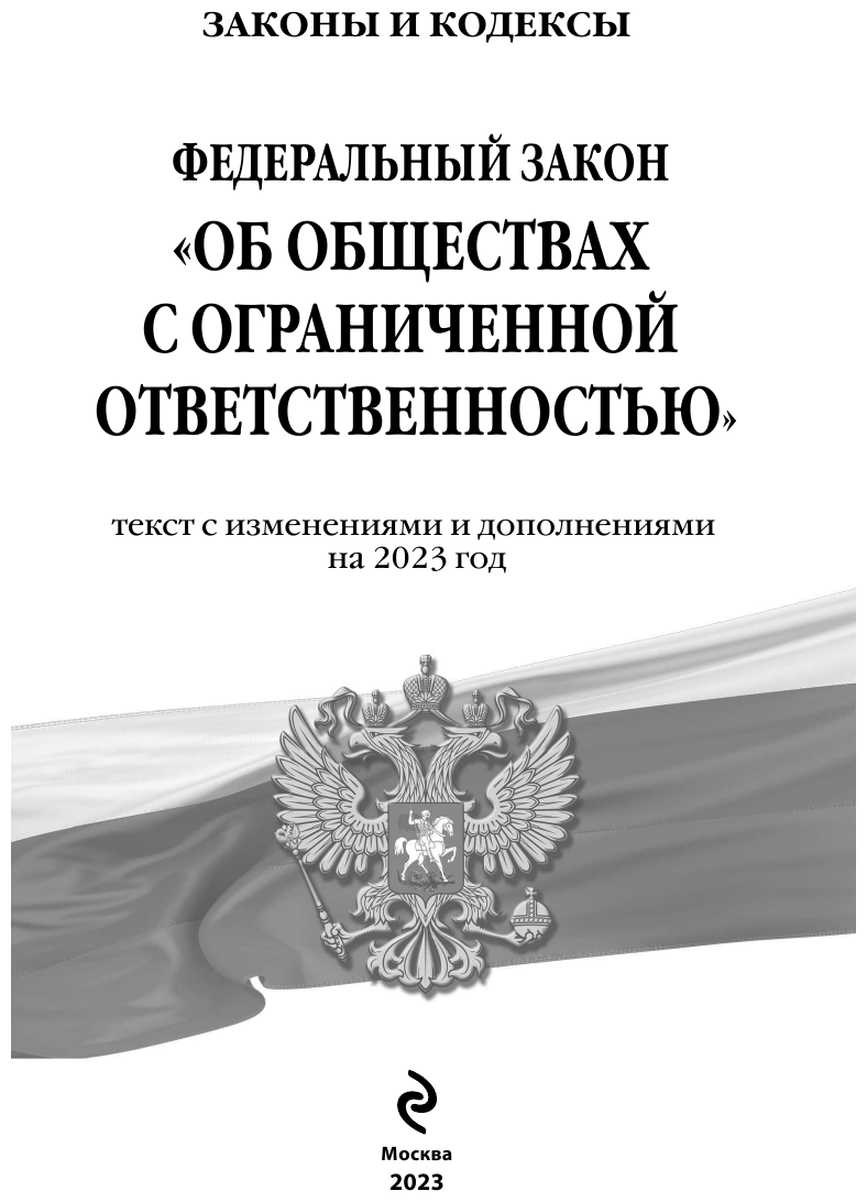 ФЗ "Об обществах с ограниченной ответственностью" по состоянию на 2023 год (Волнухина Д. (редактор)); Эксмо, 2023