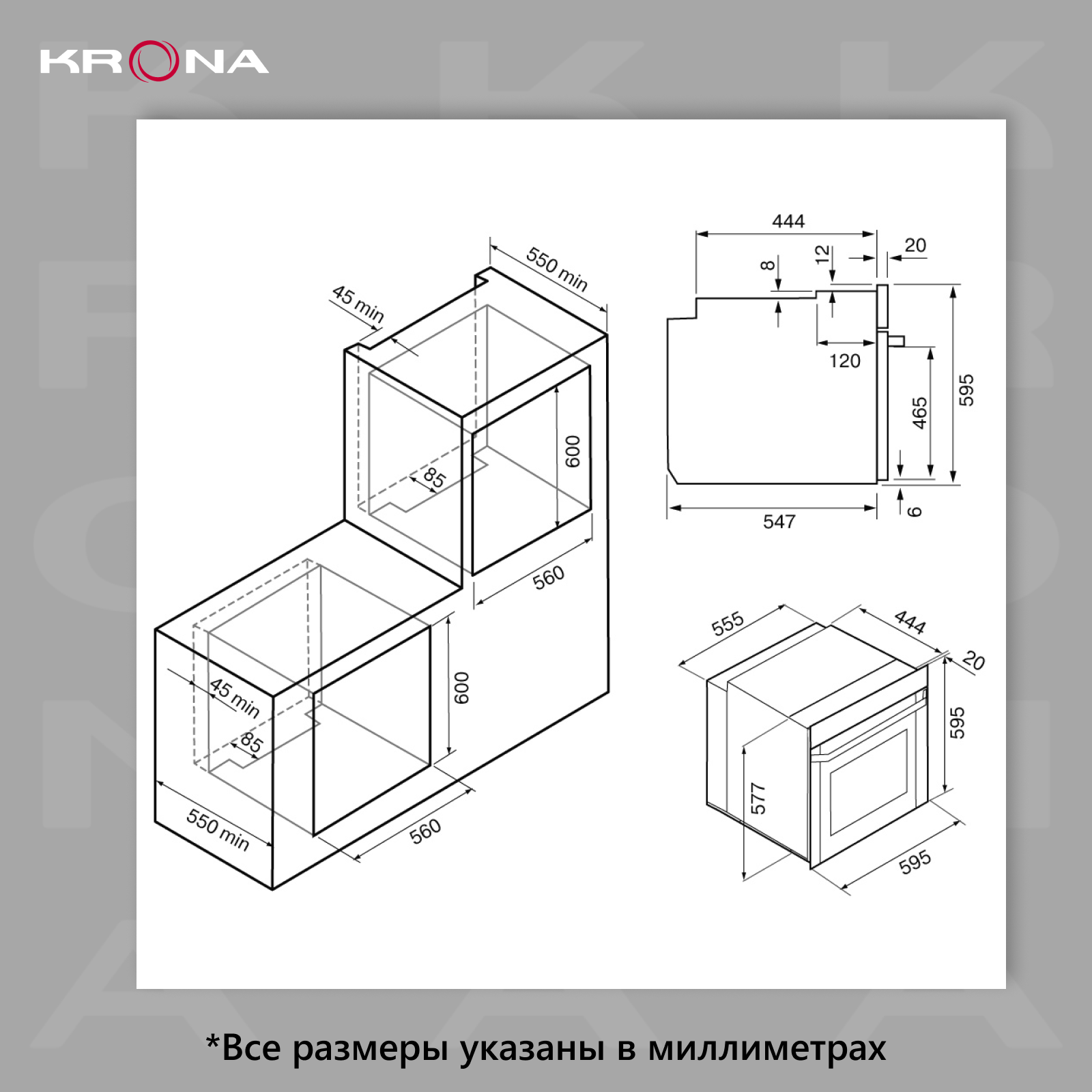 Духовой шкаф KRONA BIRNE 60 BL встраиваемый электрический черный Kronasteel Birne 60 BL KROE029