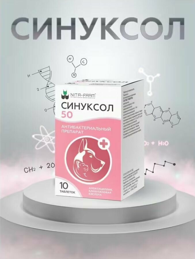 Nita-farm Синуксол Антибактериальный препарат для кошек и собак 50 мг 10 таблеток