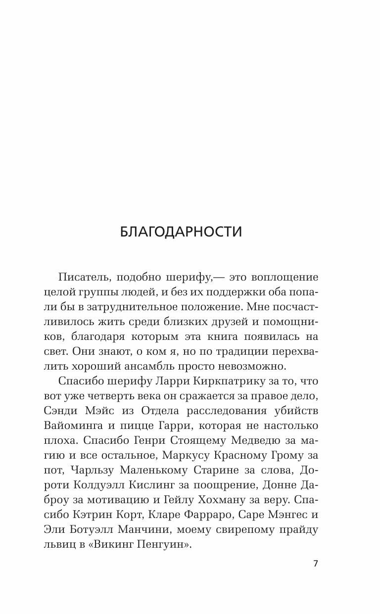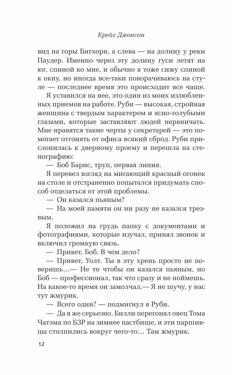 Есть поговорка - в тихом омуте черти водятся. Так и в тихом городке штата Вайоминг начинается серия убийств... Всегда приятно познакомиться с новым автором, который данным романом открывает серию книг о шерифе Уолте Лонгмайре. Очень добротный детектив, интригующий новизной сюжета и слога, насыщенный качественным юмором, несмотря на трагизм происходящих событий. Рекомендую.