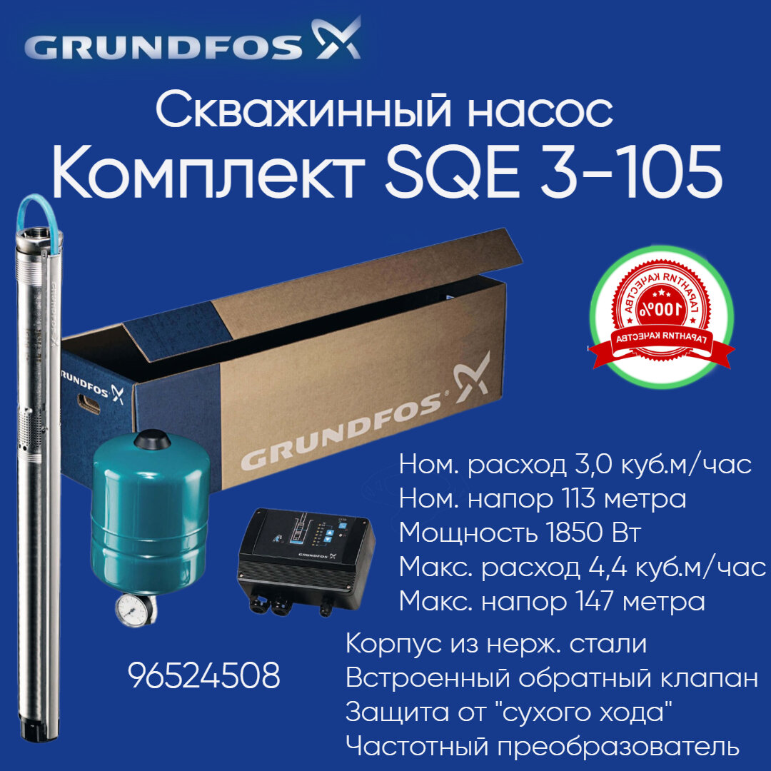 - Cкважинный насос GRUNDOS SQE 3 105 комплект