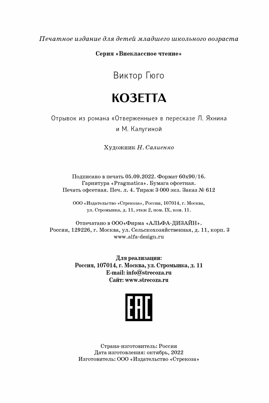 Книга: Козетта (Гюго В.); Стрекоза Торговый дом ООО, 2022