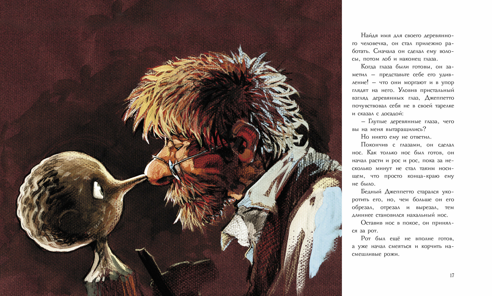 История о деревянном мальчике Пиноккио не теряет своей популярности уже более ста лет не только среди читателей, но и среди художников. Иллюстрации к этому изданию создал Массимилиано Фреццато - один из лучших современных итальянских художников. Ещё в детстве он мечтал научиться рисовать так красиво, чтобы рисунки поражали его самого. Сегодня серии работ Фреццато, самая известная из которых "Хранители Мазера", популярны во многих странах мира.