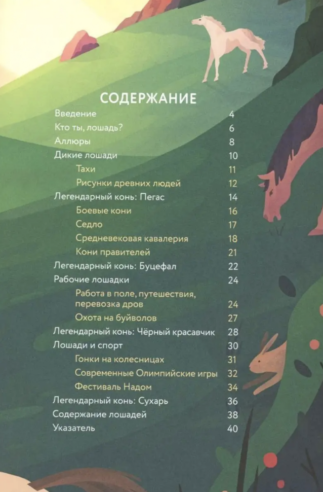 Книга для общего развития ребёнка, но и сама прочитала с большим удовольствием! Яркая, красивая, картинок намного больше, чем текста. Есть картинки на целый разворот. Любой ребёнок останется в восторге! Автор смог с лёгкостью донести ценную информацию, чтобы любому ребёнку была понятна тема лошадей и их одомашнивания. С удовольствием куплю другие книги данного автора.