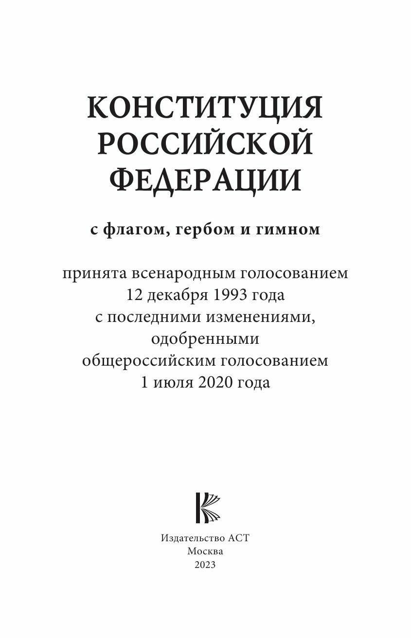 Конституция Российской Федерации с флагом гербом и гимном. Новая редакция. С учетом образования в составе РФ новых субъектов (Коллектив авторов); АСТ, Кладезь, 2025