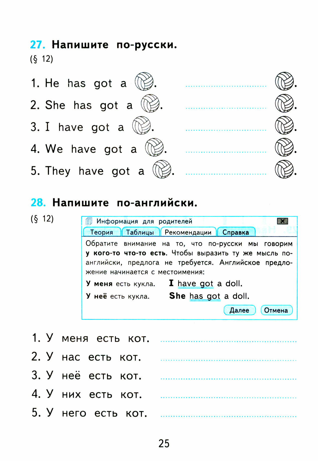 Тонкая рабочая тетрадь с большим набором упражнений (216), в конце - глоссарий по необходимой грамматике, если вдруг родители не могут оказать профессиональной помощи своему ребенку.