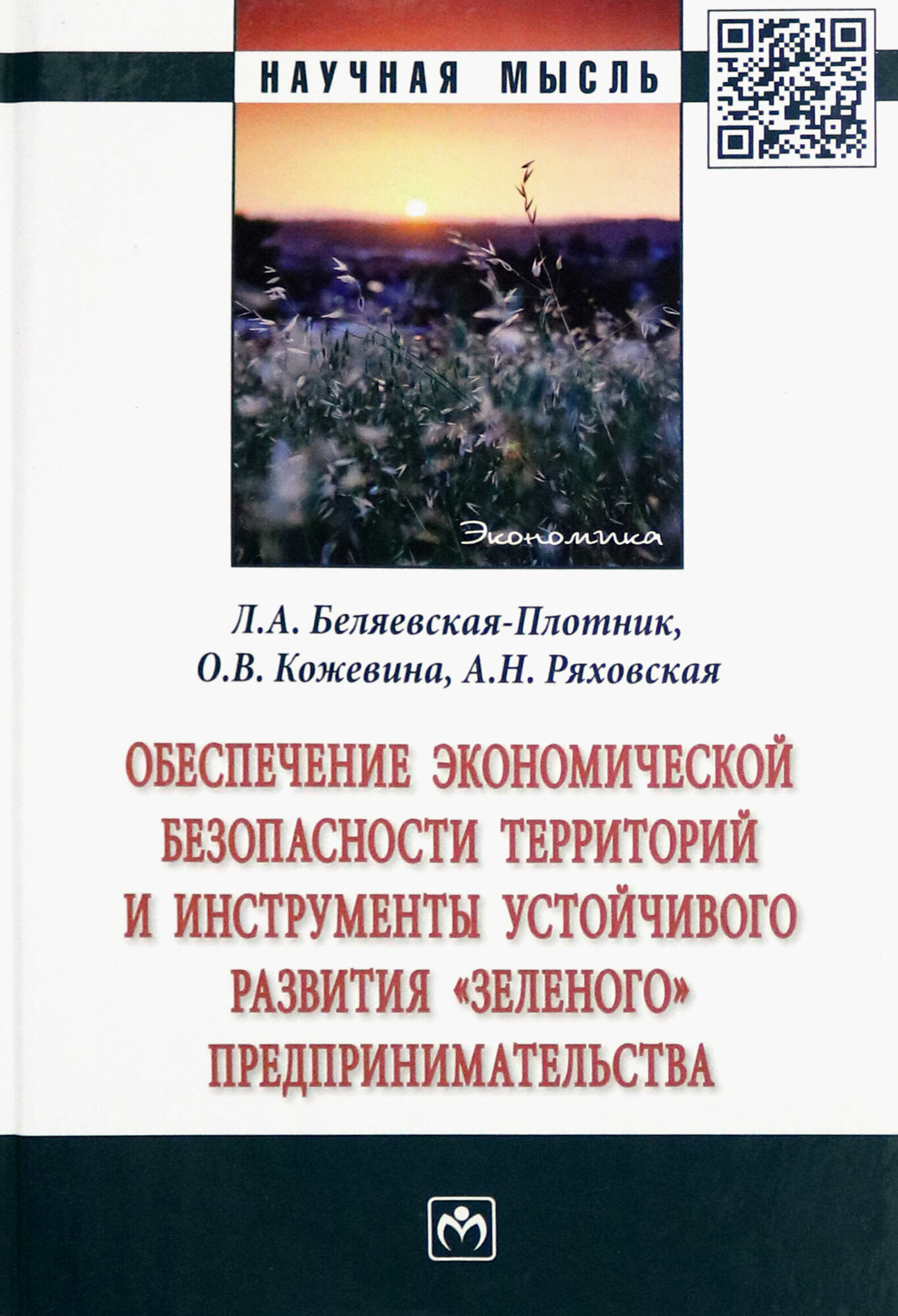 Обеспечение экономической безопасности территорий и инструменты устойчивого развития "зеленого" предпринимательства (Ряховская Антонина Николаевна, Кожевина Ольга Владимировна, Беляевская-Плотник Любовь Александровна); Инфра-М, 2023