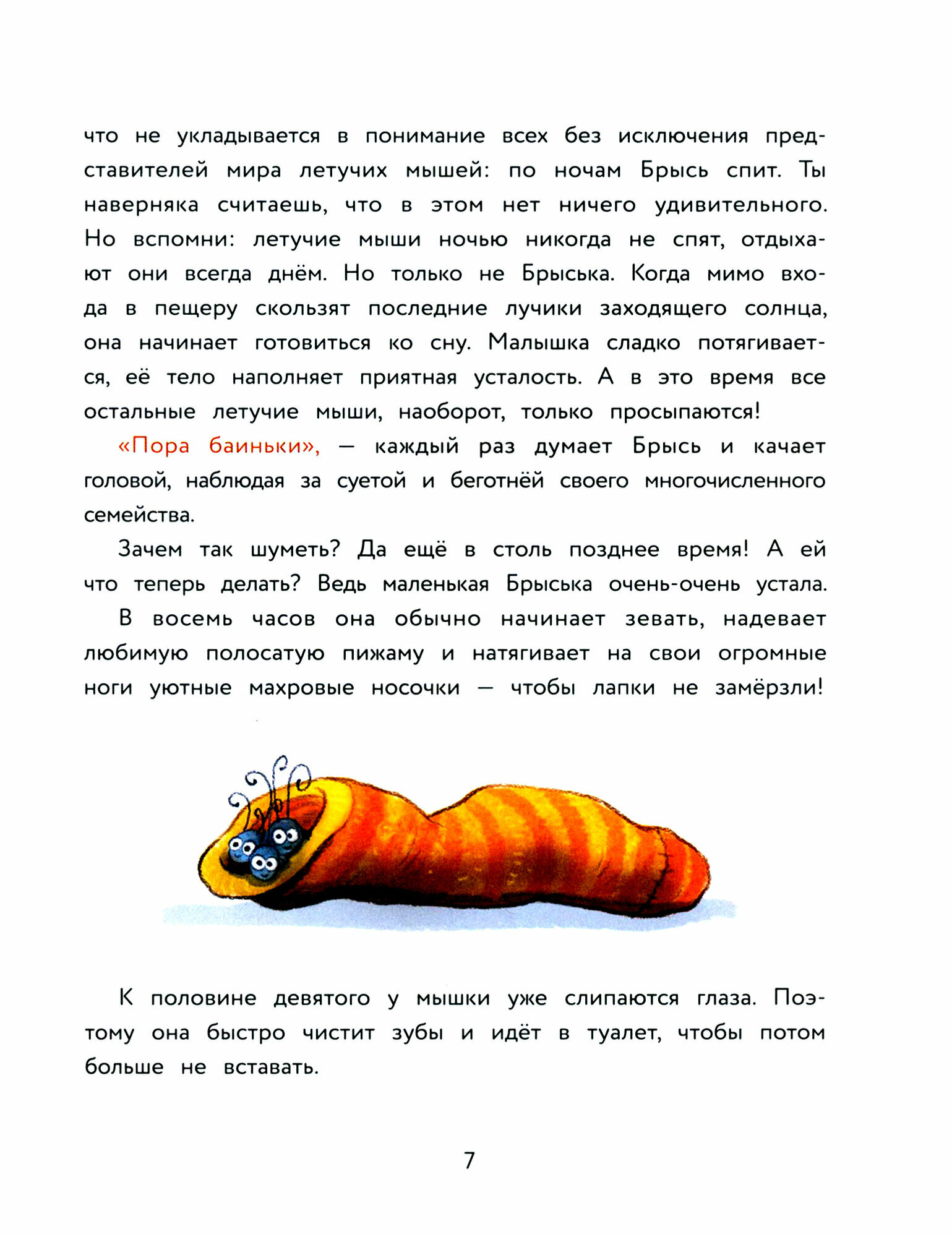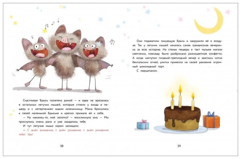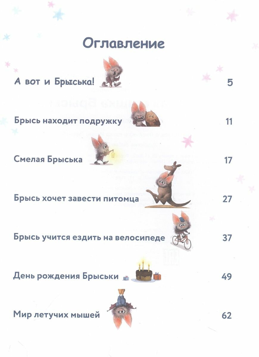 Познакомьтесь - эту летучую мышку зовут Брысь! Все её сородичи ведут ночной образ жизни, но только не эта милая малышка. Брыська считает, что нужно спать ночью, а не днём. Ведь днём происходит всё самое интересное: можно завести друзей, покататься на велосипеде или отпраздновать день рождения!