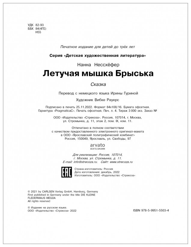 Сервис сравнения цен СкидкаГИД предлагает сравнить цены на товар «Книга: Летучая мышка Брыська (Нессхефер Нанна); Стрекоза, 2022»